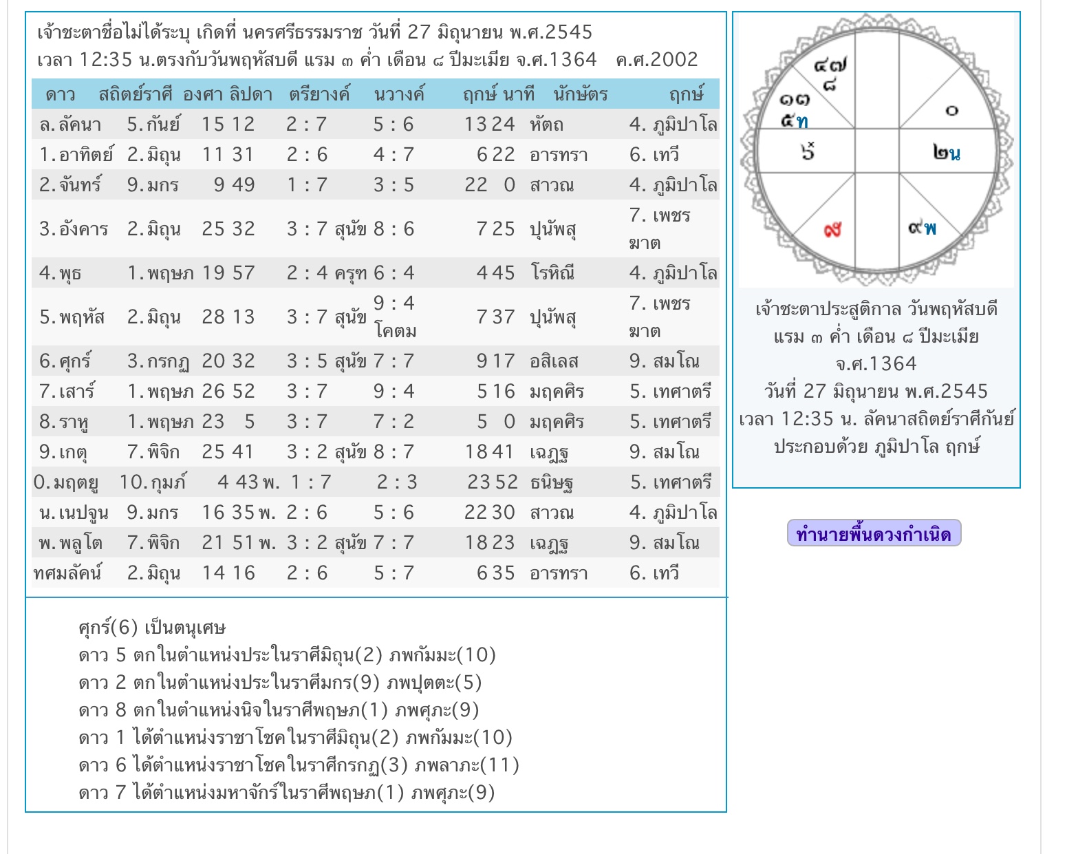เกิดวันพุธที่ 28 เมษายน 2536 เวลา 14:25 น. กรุงเทพ