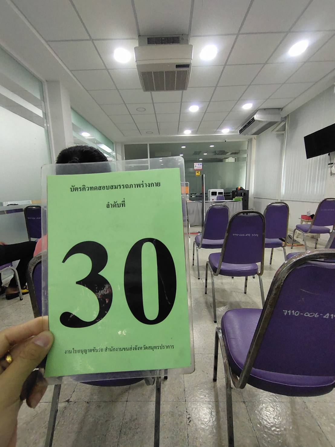 👉🏻 ทดสอบผ่านแล้ว เจ้าหน้าที่จะแจกบัตรคิวสีเขียว เพื่อไปทดสอบสมรรถภาพต่อค่ะ (เหยียบเบรคและดึงเชือก ทดสอบสายตาเชิงลึกค่ะ)