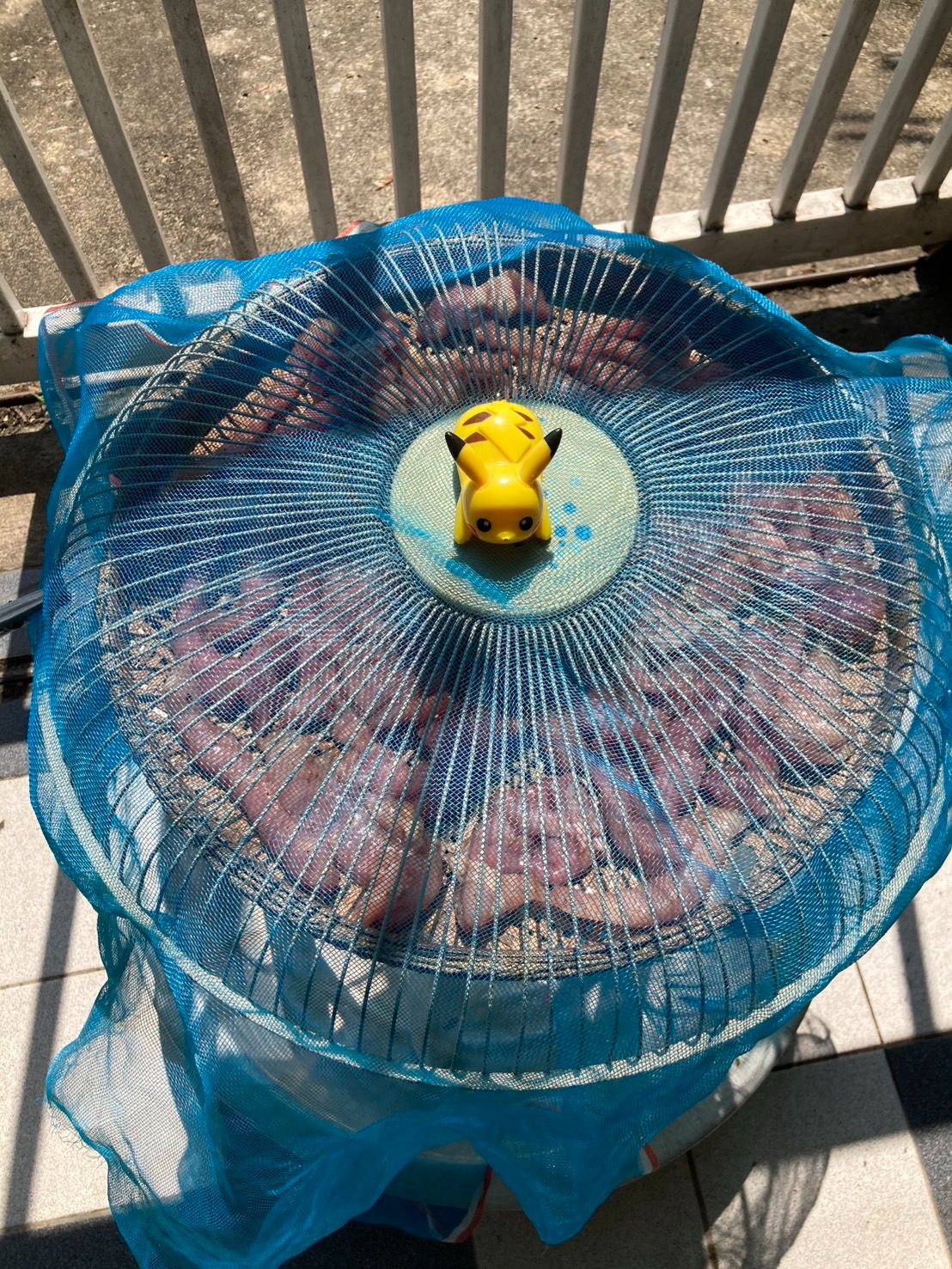 เห็นมีแดดเลยเอาหมูที่หมักไว้ไปตากแดด ช่วงนี้หมูราคาลดลง ทำเก็บไว้ให้น้องกิน กัมบอลใกล้กินเจแล้ว น้องไม่ได้กินด้วย