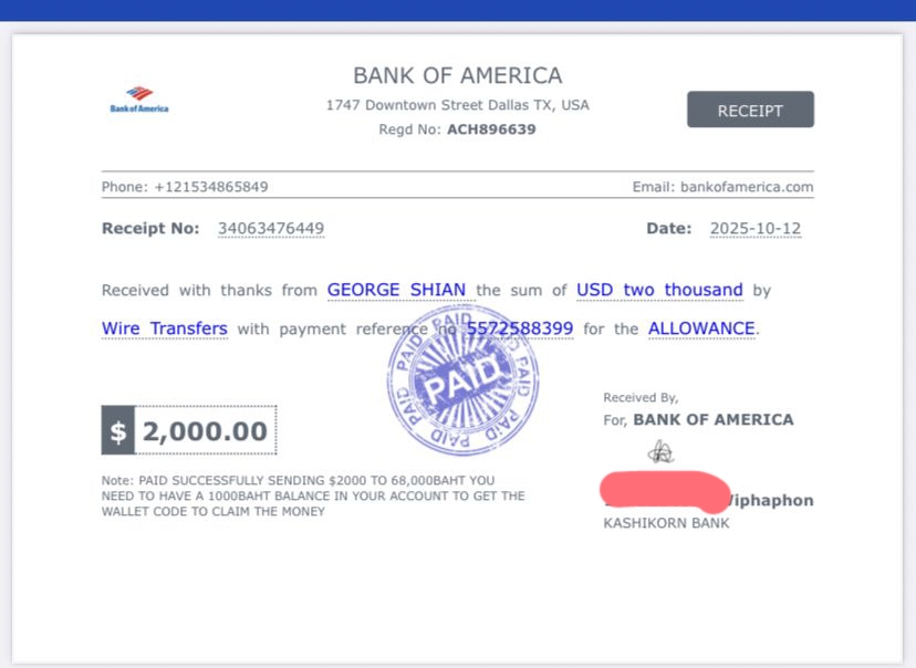 ต่างชาติบอกโอนมาแล้วอันนี้สลิปจริงหรือหลอกคะทำไมถึงมีกำกับว่าต้องมี1000บาทในบัญชีถึงจะได้รับเงิน