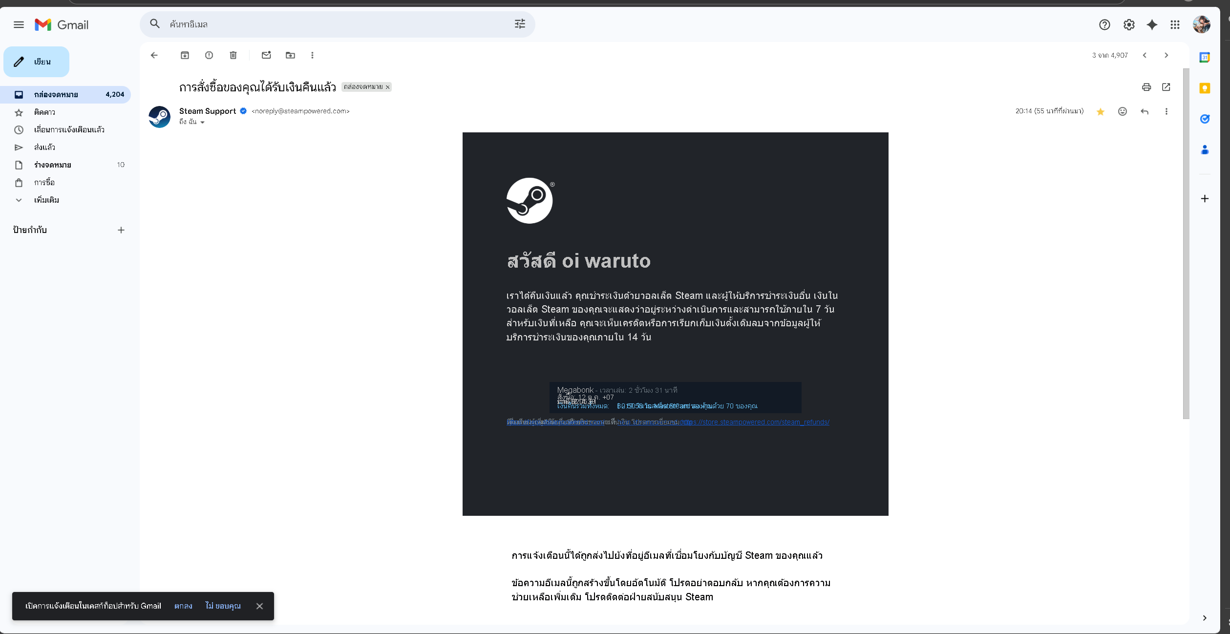 ผมได้ทําเรื่องร้องขอเงินคืนและ ได้รับอนุมัติและได้รับคืนจากทางsteamแล้วครับ