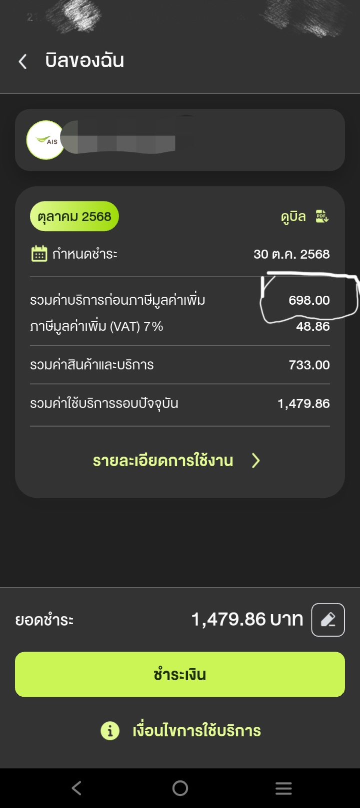 ทำไมเน็ต ais จากปกติเสีย 399 แต่เดือนนี้บิลส่งมา 698 เกินมา 299 ค่าอะไรคับ ผมงงเลยคับ
