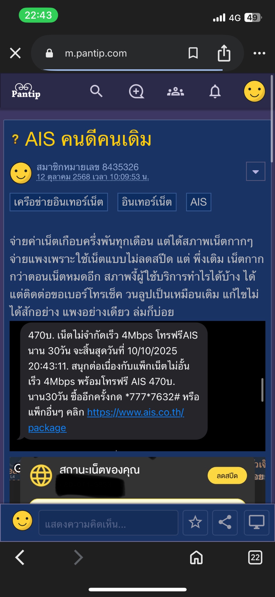 เนื่องจากแจ้งแก้ไขตั้งแต่10โมงกว่าๆ จนถึงตอนนี้เน็ตก็ยังใช้ไม่ได้ กว่าจะโหลด จำทำธุนะกรรมก็ไม่ได้ ฟังเพลงยังไม่ได้ ทั้งๆที่เพิ่งเติมเน็ต ล่าสุด ระบบmy ais ไม่ให้เข้าเช็ค โคตรจะเลิศเลยแหละ เหมือยไม่ได้แก้ไข(หรือกวนอันนี้ก็ไม่แน่ใจ เพราะเน็ตช้ากว่าเดิมสุดๆ ) อะๆจะบอกว่าใช้เน็ตเยอะไม่ได้นะ เพราะพึ่งเติมเมื่อวาน2ทุ่ม ไม่งั้นคงได้เติมเดือนละแสนกะมั้งถึงจะได้ใช้เน็ตน่ะ