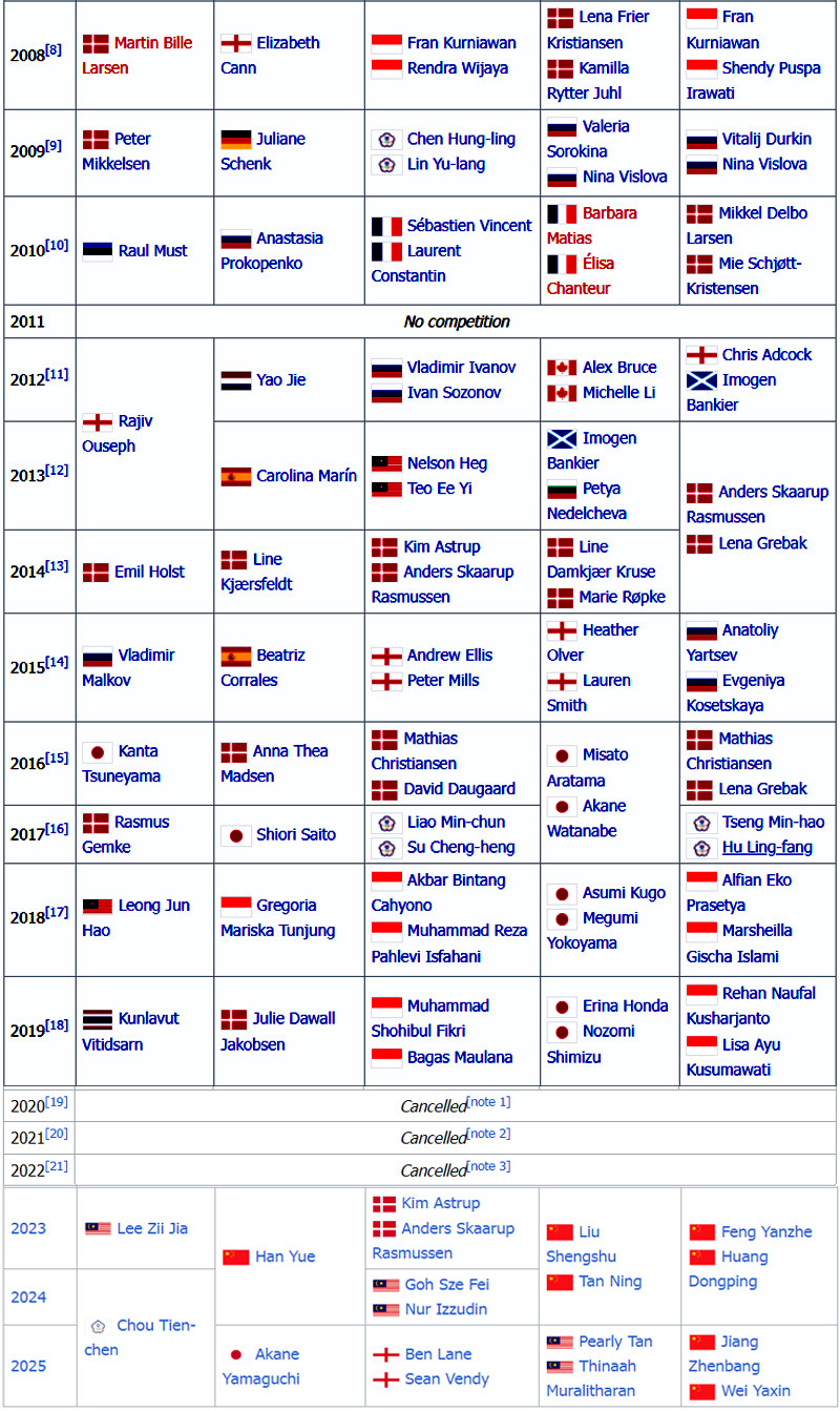 • ตารางคะแนน BWF World Tour Super 500 (Grade 2 Level 4)