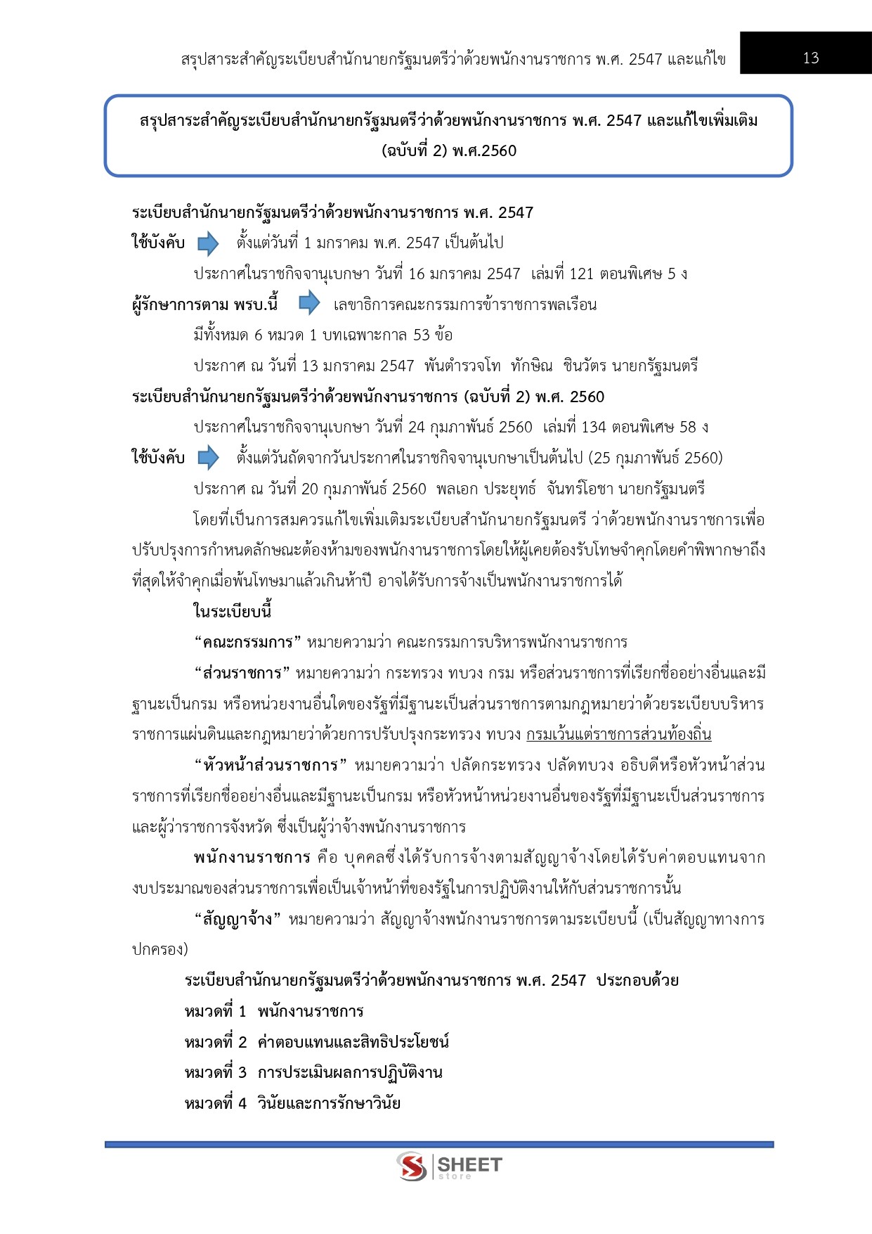 - แนวข้อสอบสรุปสาระสำคัญระเบียบสำนักนายกรัฐมนตรีว่าด้วยพนักงานราชการ พ.ศ. 2547 และแก้ไขเพิ่มเติม (ฉบับที่ 2) พ.ศ. 2560
