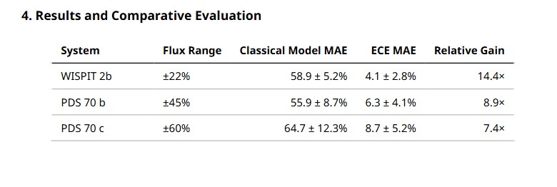 จัดการความผันผวน: ECE ได้รับการออกแบบมาเพื่อจัดการกับความไม่แน่นอนที่เกิดจาก ความผันผวนของฟลักซ์(แสงที่ปล่อยออกมาขณะที่ดาวเคราะห์กำลัง "กิน" มวลสาร) ในระบบดาวเคราะห์ก่อนเกิด ซึ่งแบบจำลองคลาสสิกทำได้ไม่ดี
