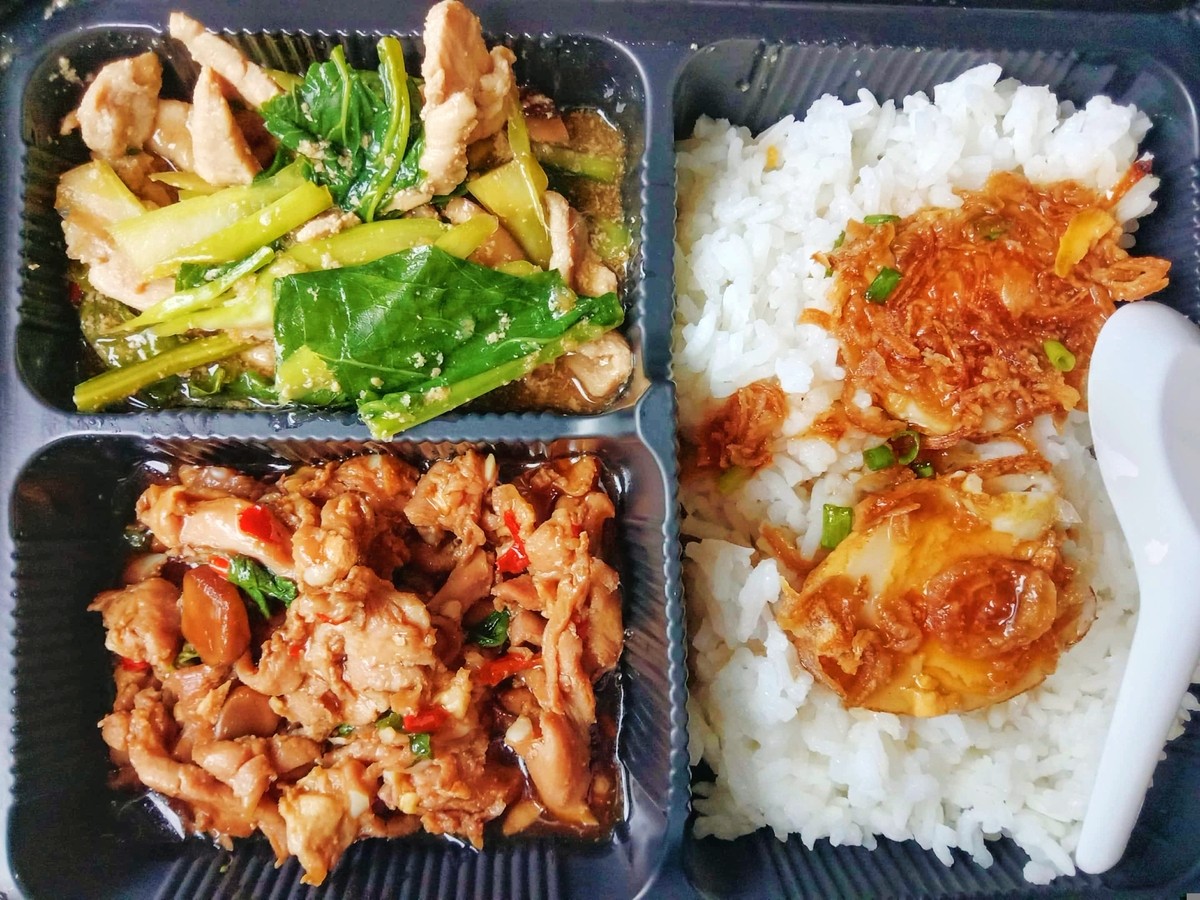 คะน้าหมูชิ้น + กะเพราไก่ + ไข่ลูกเขย 🍱