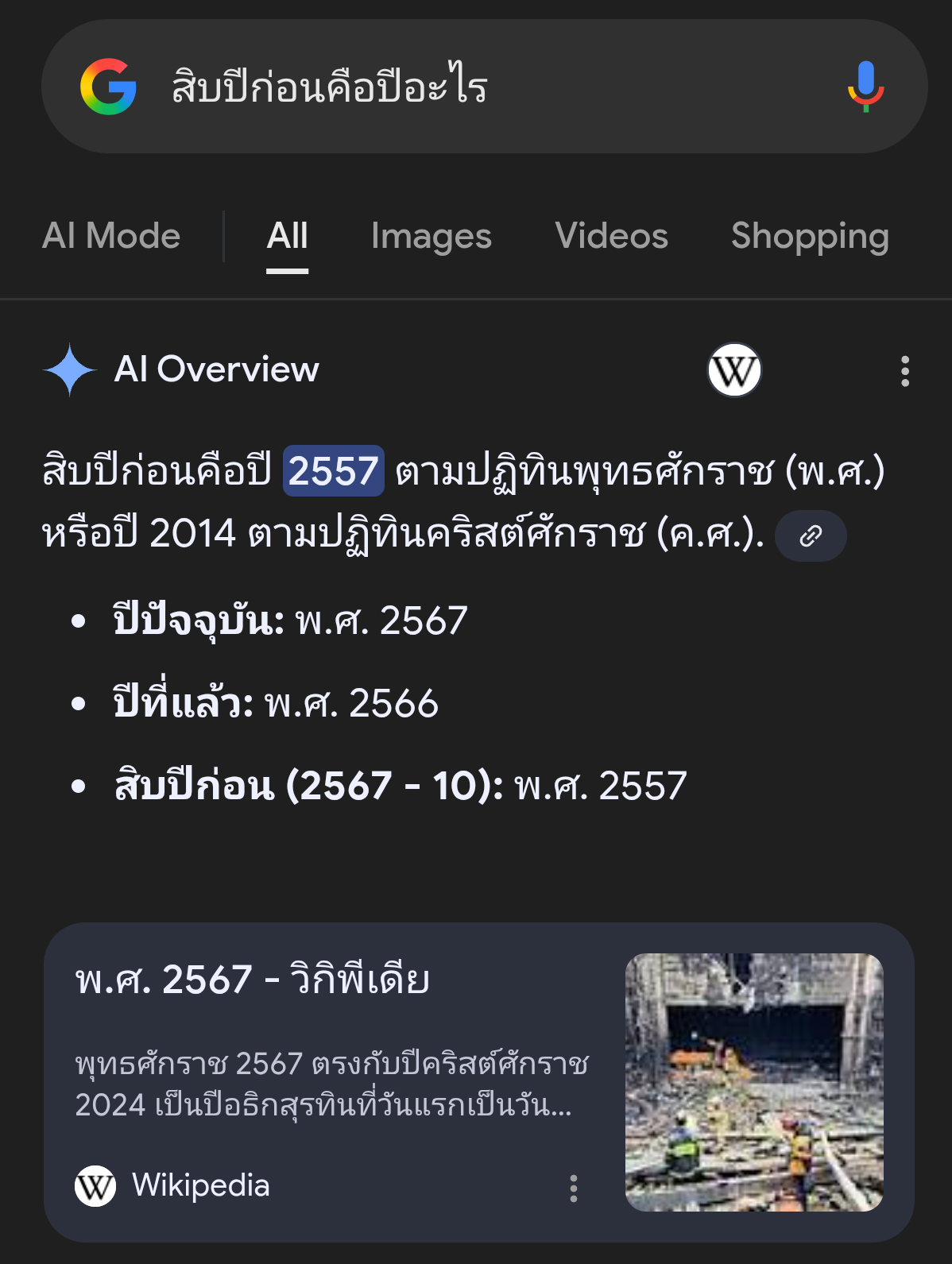 ถ้าถามGoogle ว่า สิบปีก่อนคือปีอะไร ในปีนี้ ..