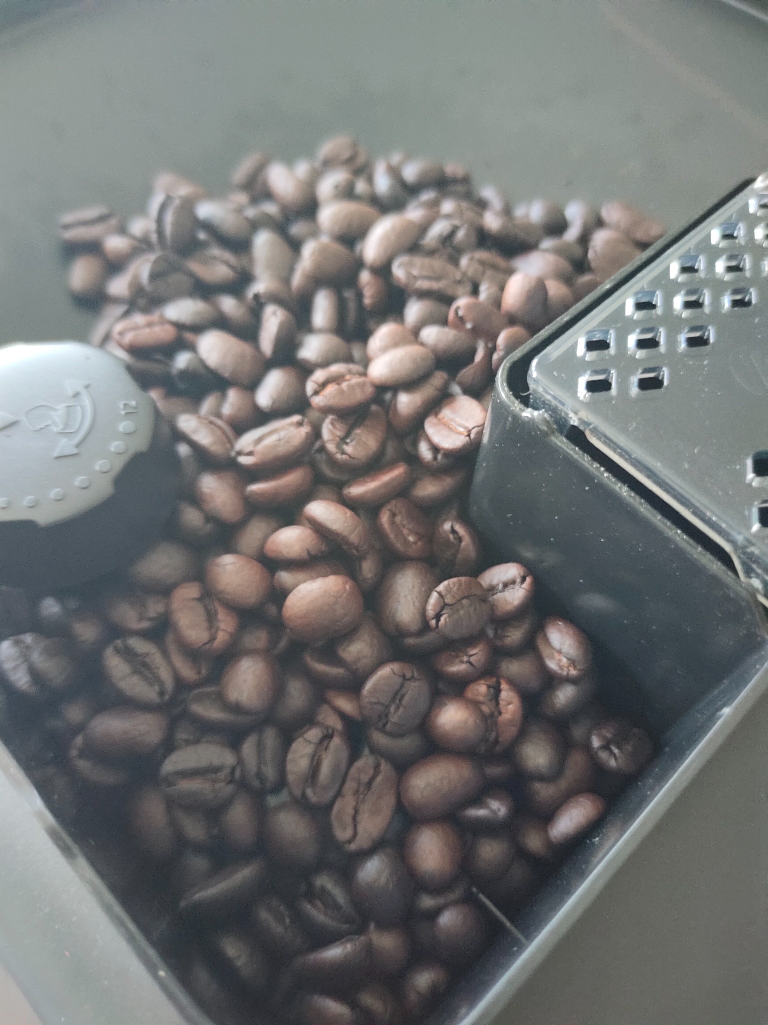 👉🏻 ด้านบนของตัวเครื่อง :: เป็นส่วนที่ใช้สำหรับใส่เมล็ดกาแฟสด เครื่องนี้มีหัวบดเซรามิกในตัว ไม่ต้องซื้อเครื่องบดมา สามารถเทเมล็ดกาแฟที่เราชอบลงไปได้เลยคะ