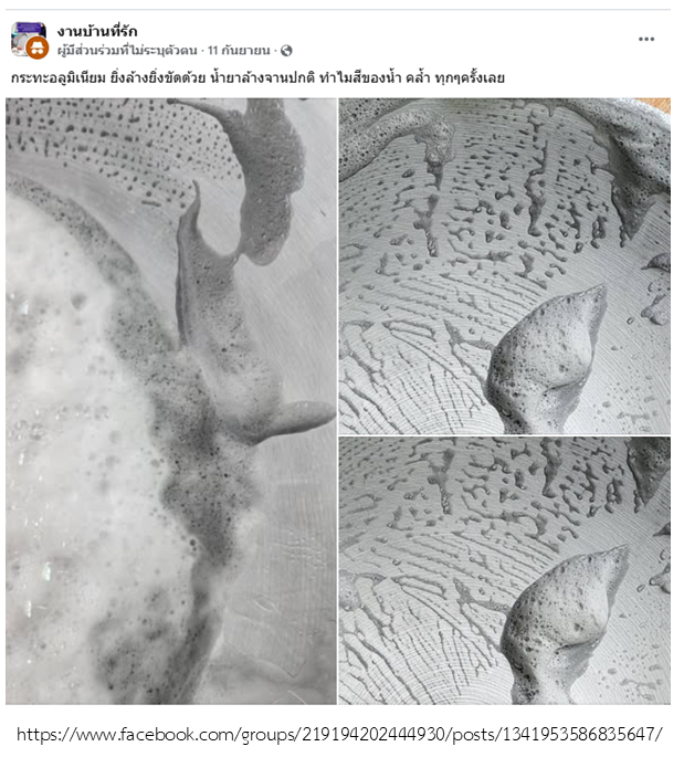 “กระทะอลูมิเนียม ยิ่งล้างยิ่งขัดด้วย น้ำยาล้างจานปกติ ทำไมสีของน้ำ คล้ำ ทุกๆ ครั้งเลย”