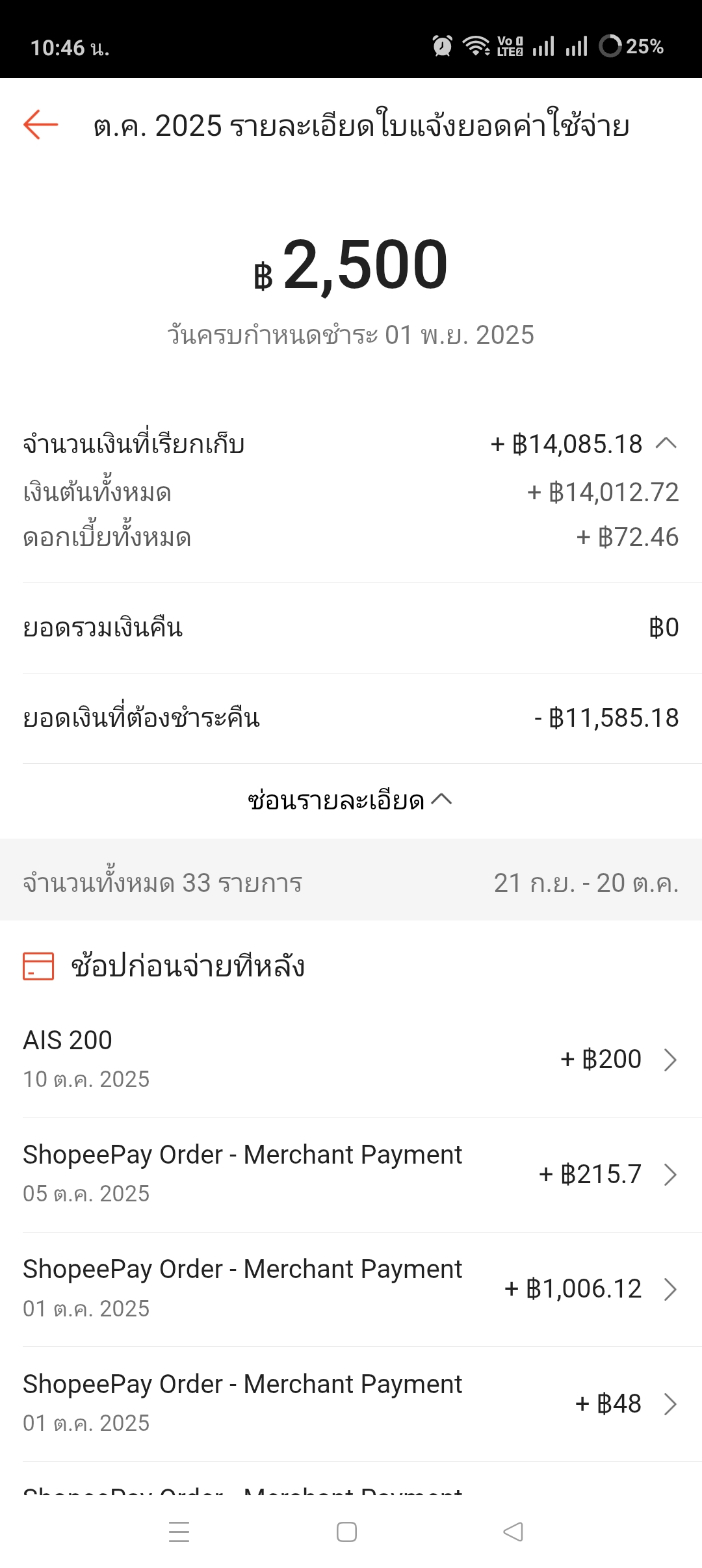 ก่อนหน้านี้ หนูจ่ายยอดรวมไปหมื่น+ เลยเอามาผ่อนใหม่ เป็นยอด 2500 ต่อเดือน เดือน ตุลาคมนี้ หนูต้องจ่ายเท่าไหร่ 2500 หรือ 14000+