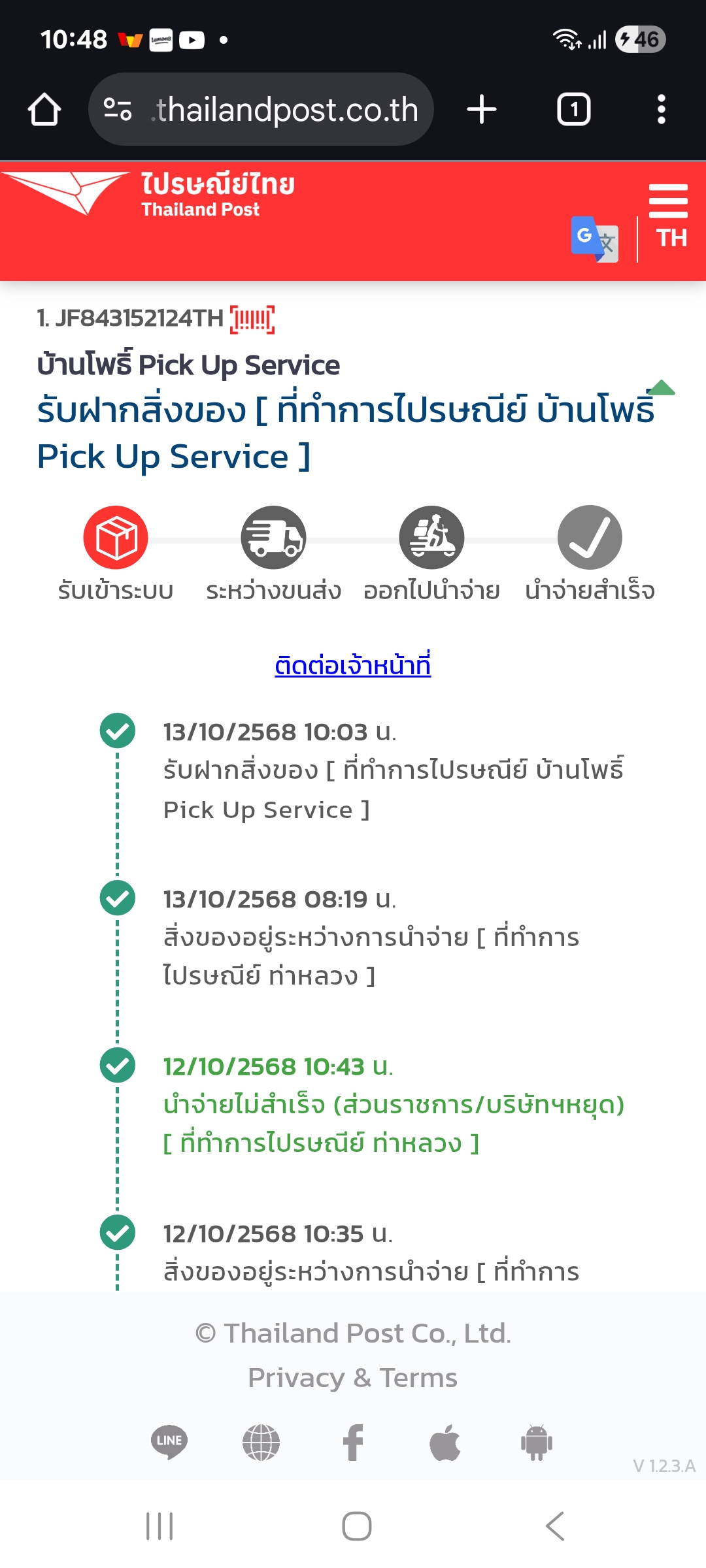พัสดุไปรษณีย์ไทย EMS ไม่ยอมมาส่งของครับ JF843152124TH
