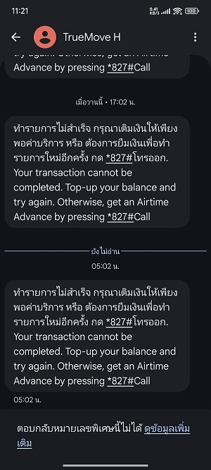 sms ทำรายการไม่สำเร็จ กรุณาเติมเงินให้เพียงพอค่าบริการ คืออะไรครับ