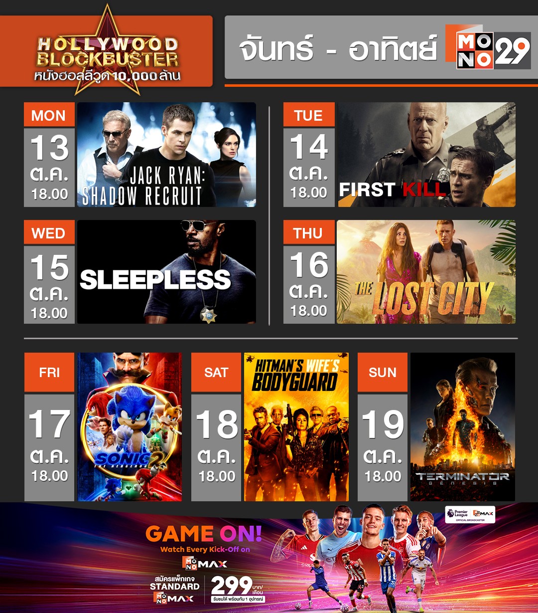 Hollywood Blockbuster หนังฮอลลีวูด 10,000 ล้าน วันที่ 13 - 19 ตุลาคม เวลา 18.00 น. ทางช่อง MONO29