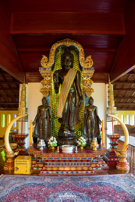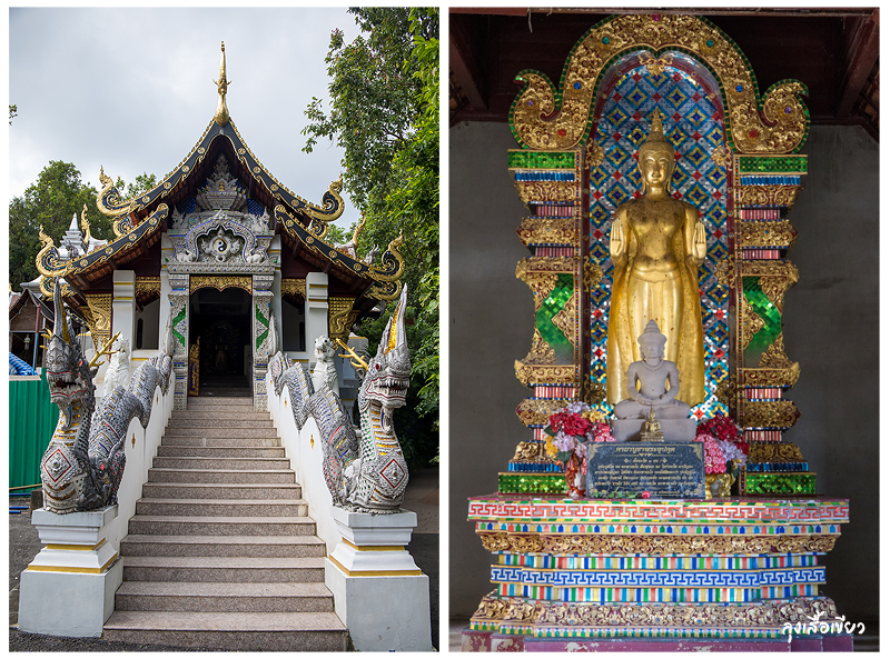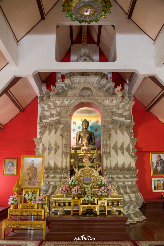 จากรัตนเจดีย์หากเดินตรงต่อไปจะพบพระอุโบสถไม้กึ่งปูน ด้านในประดิษฐานพระเนื้อหยกทรงเครื่องครับ