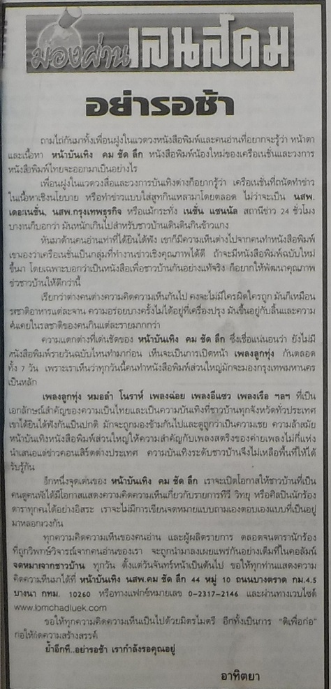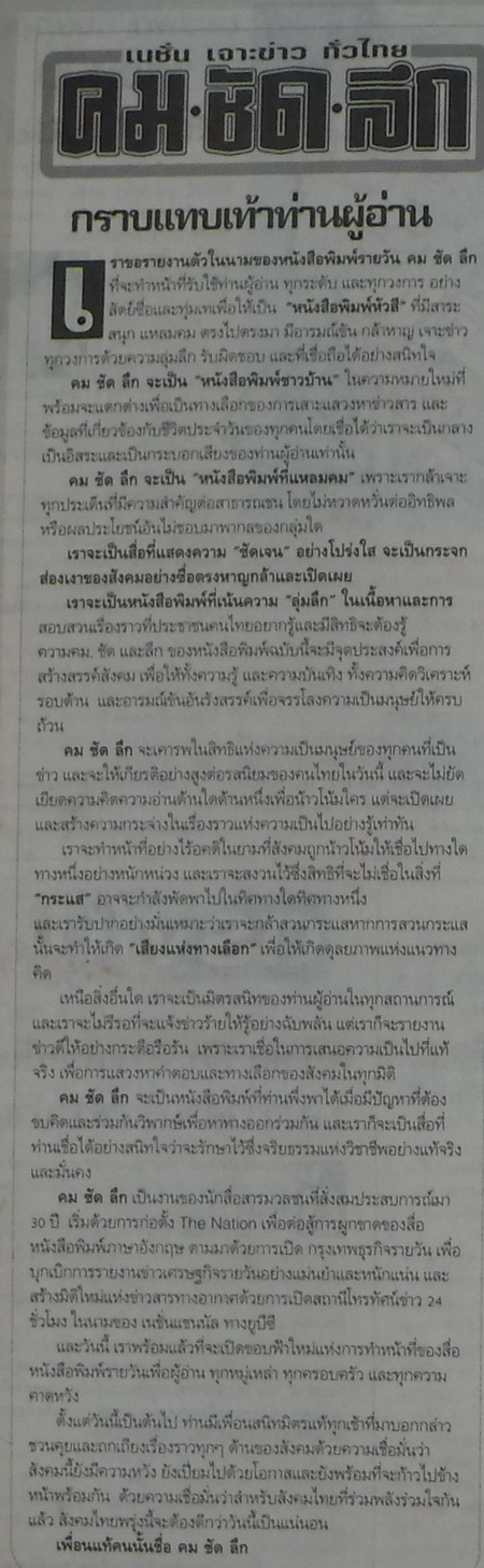 เนื้อหา-คอลัมน์ใน นสพ.คม ชัด ลึก