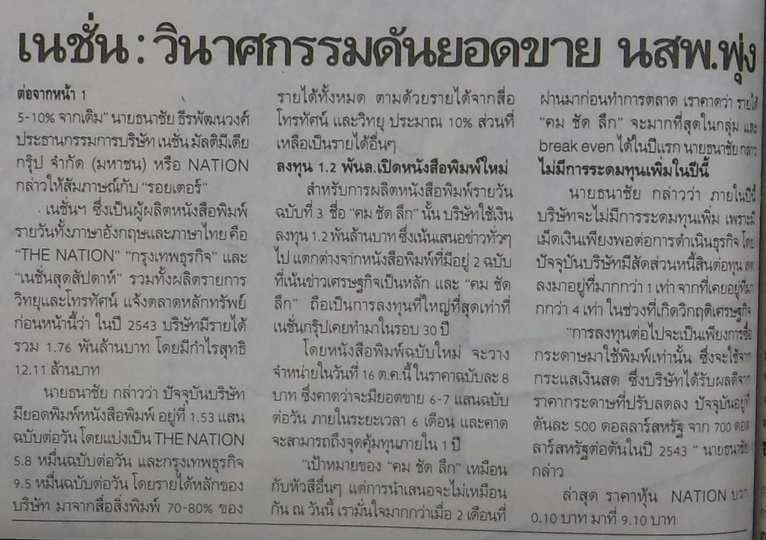 กรุงเทพธุรกิจ, 23 ต.ค. 2544
