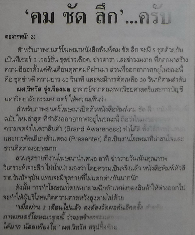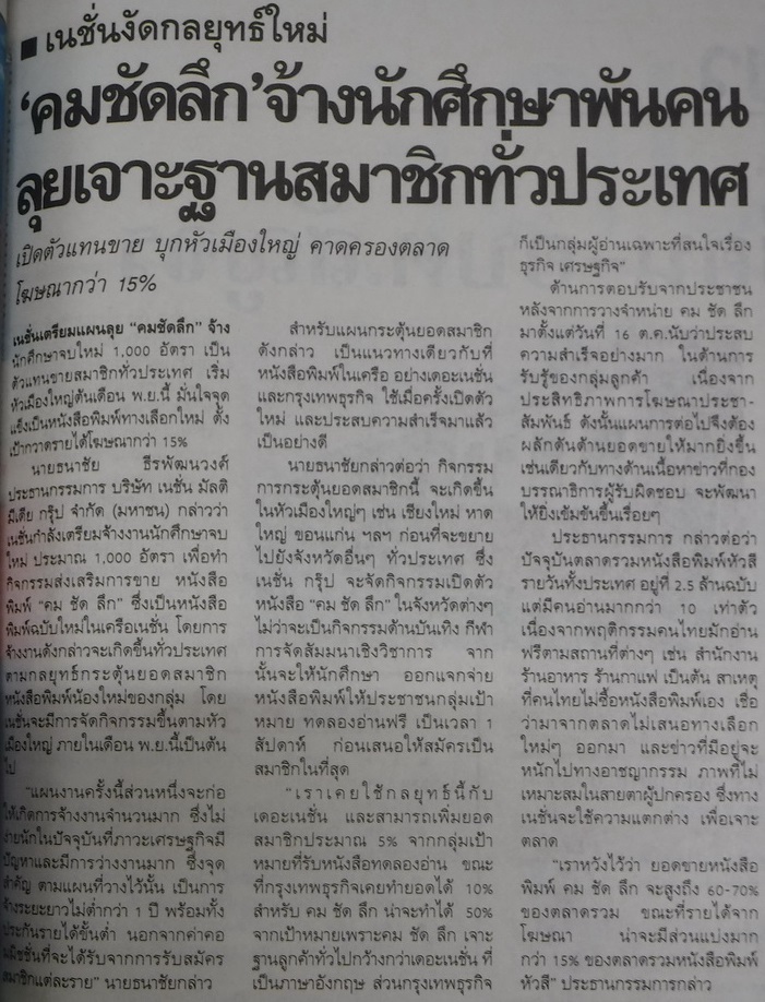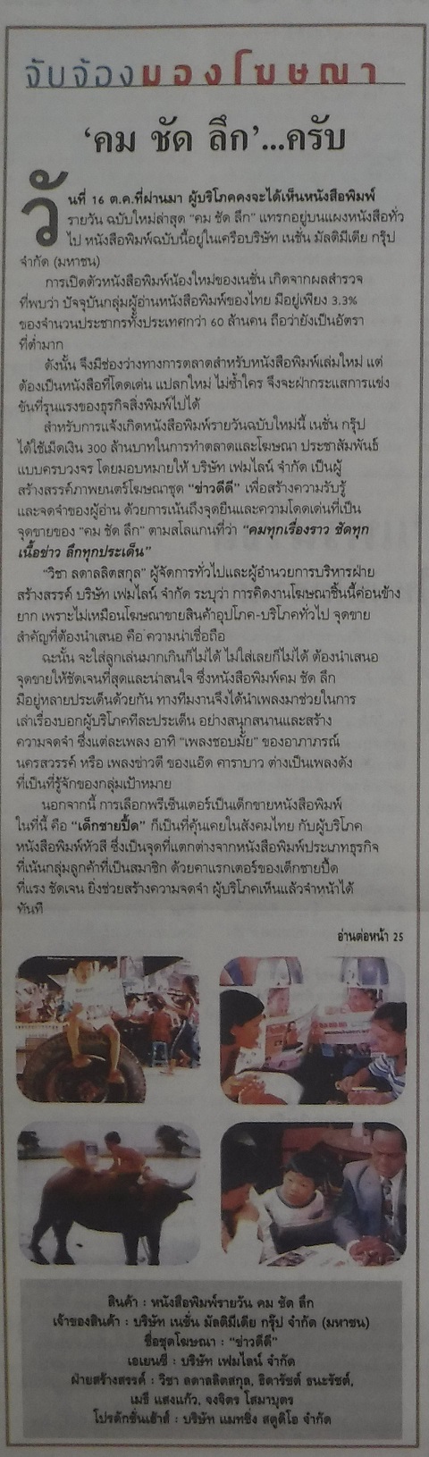 ความเคลื่อนไหวทางการตลาดของ คม ชัด ลึก