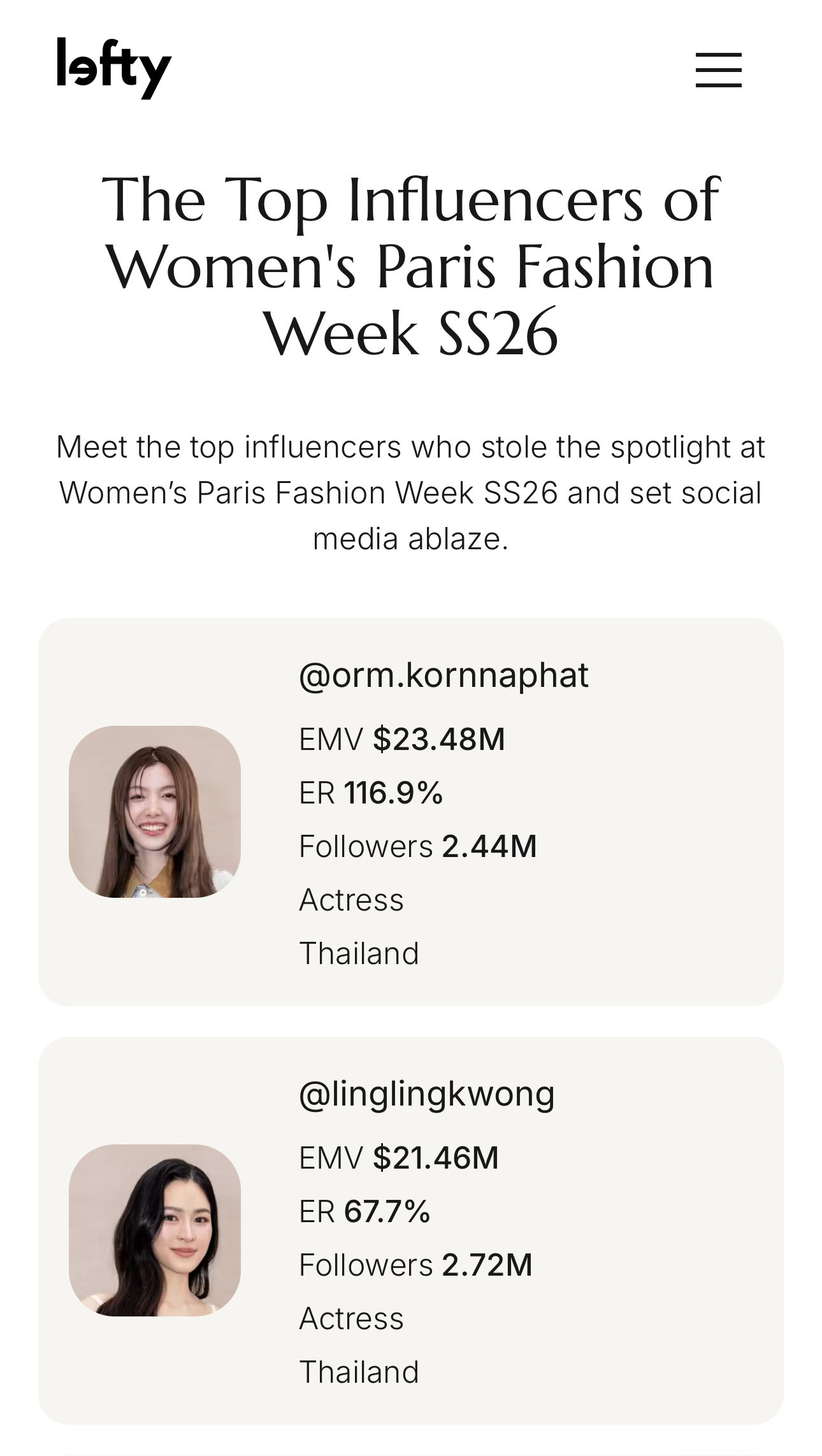 Lefty.io PFW LingOrm ได้อันดับ 1&2