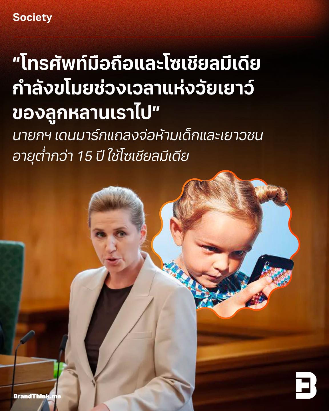 โทรศัพท์มือถือและโซเชียลมีเดีย กำลังขโมยช่วงเวลาแห่งวัยเยาว์ของลูกหลานเราไป” นายกฯ เดนมาร์กแถลงจ่อห้ามเด็กและเยาวชน อายุต่ำกว่า 15 ปี ใช้โซเชียลมีเดีย