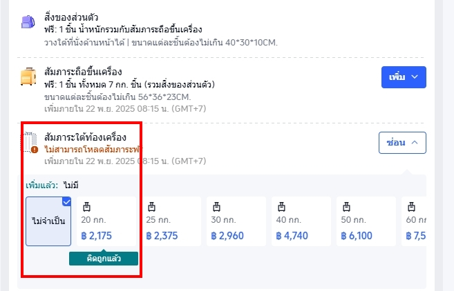 คือเราไป 7 วัน แต่เสื้อผ้าเราไม่เยอะ เลยไม่ได้ซื้อแบบโหลด เราจองตั๋วเรียบร้อยหมดแล้ว