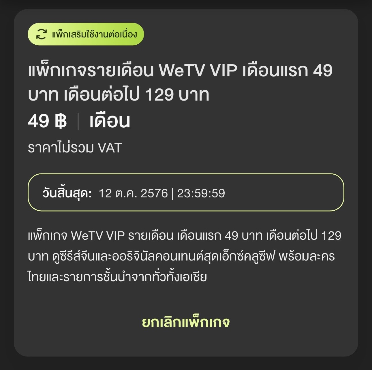 แพ็กเกจ WeTV VIP ของAIS