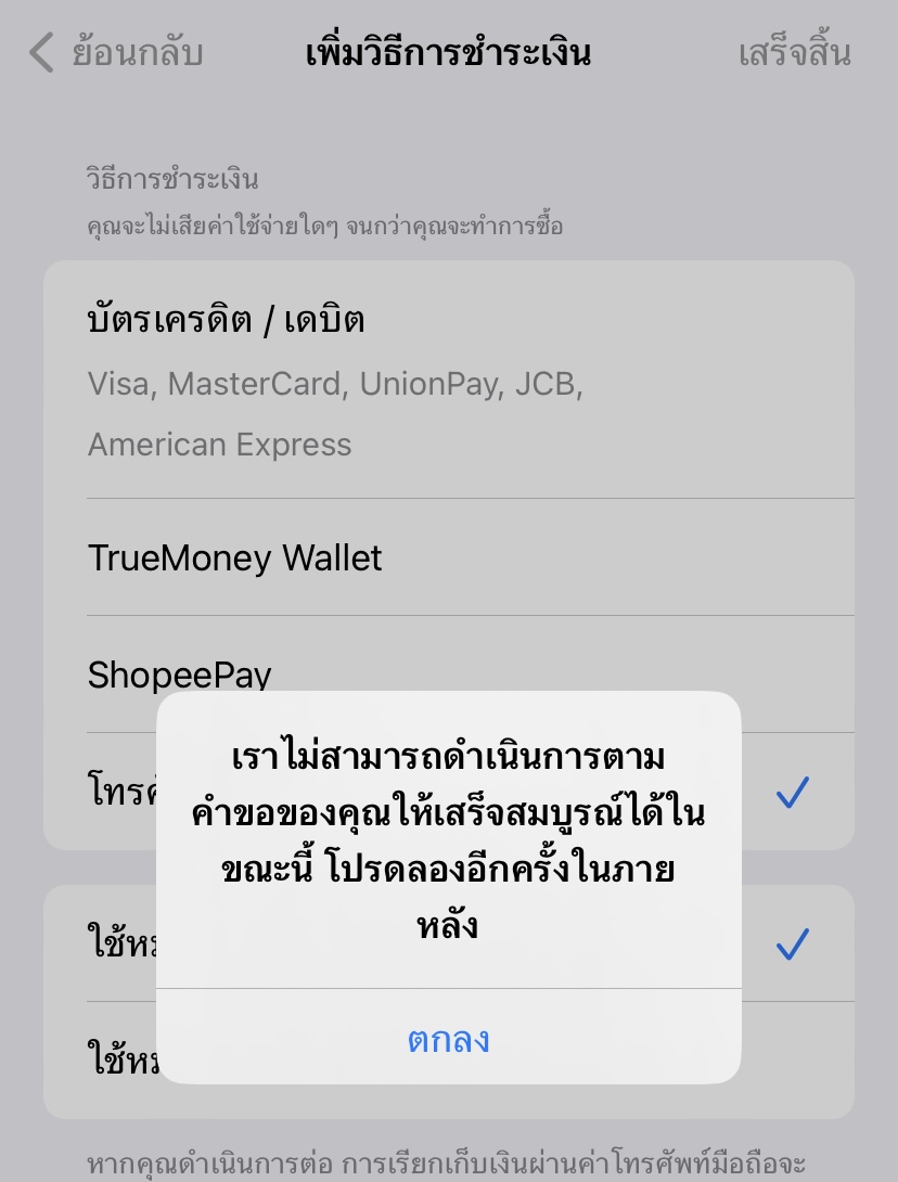 เพิ่มวิธีการชำระเงินผ่านเบอร์มือถือไม่ได้