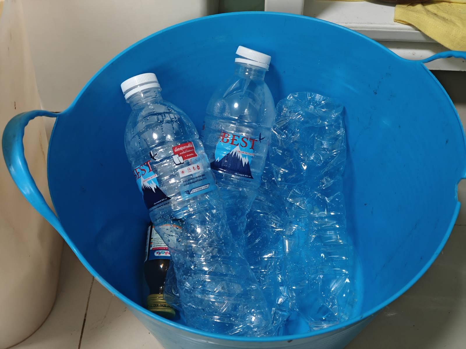 ผมเป็นคนที่แยกขยะก่อนทิ้ง ขยะที่บ้านผมนอกจากขยะเปียก ก็จะมีขยะ recycle ทั่วไป (กระดาษ พลาสติก โลหะ) แยกใส่ถุงเอาไว้ ขวดน้ำพลาสติก กับ ขวดแก้ว อันนี้จะรวบรวมเอาไปให้คนงานขายเป็นรายได้ กระป๋องสเปรย์ หลอ