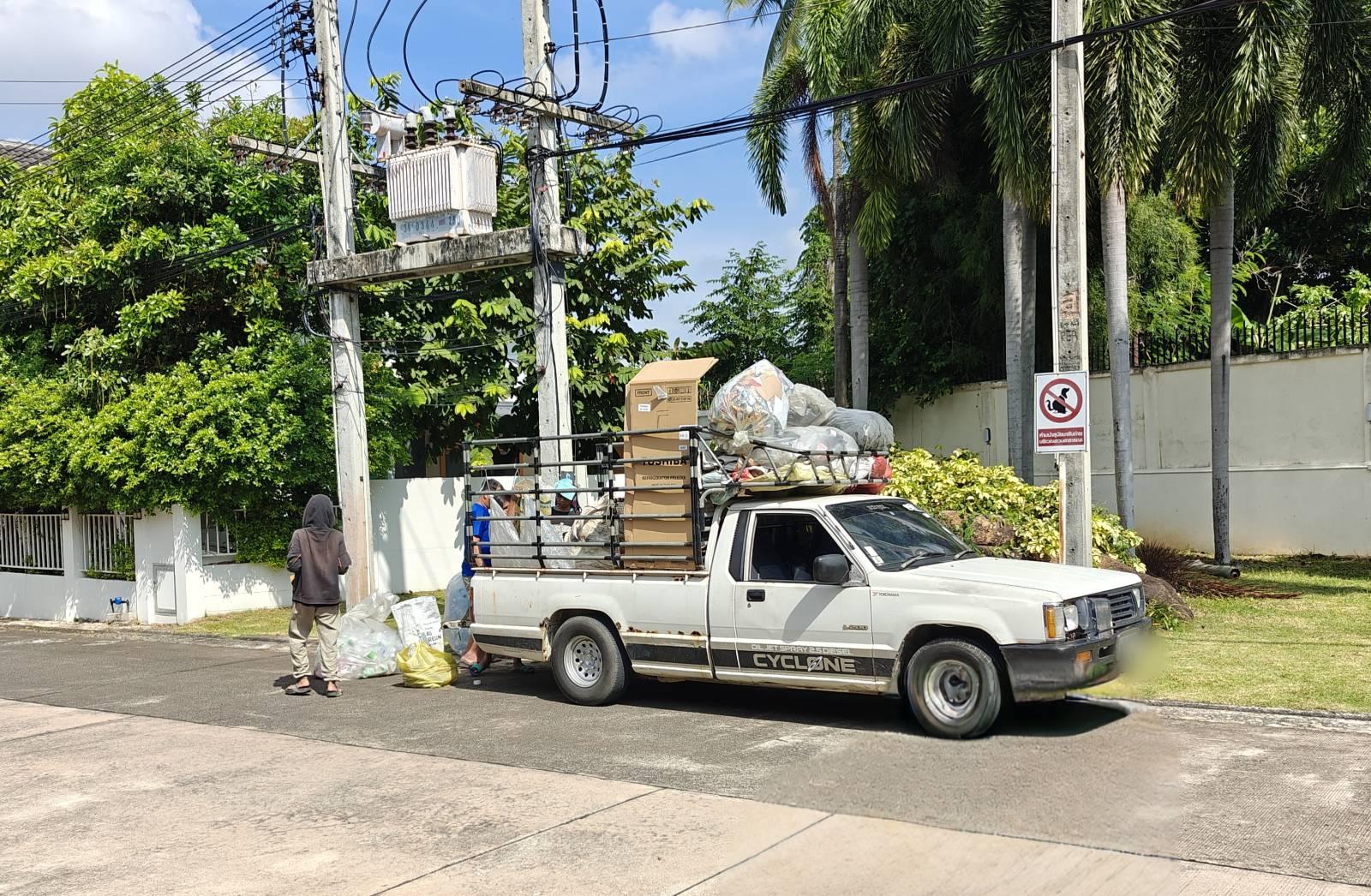พอขยะรีไซเคิลที่เก็บได้เริ่มเยอะ ก็ถึงเวลาเคลียร์พอดีเลยค่ะ แถวบ้านเจ้าของกระทู้มีรถรับซื้อของเก่ามารับซื้อถึงหน้าบ้านเลย ยกมากองไว้เตรียมขายได้เลย