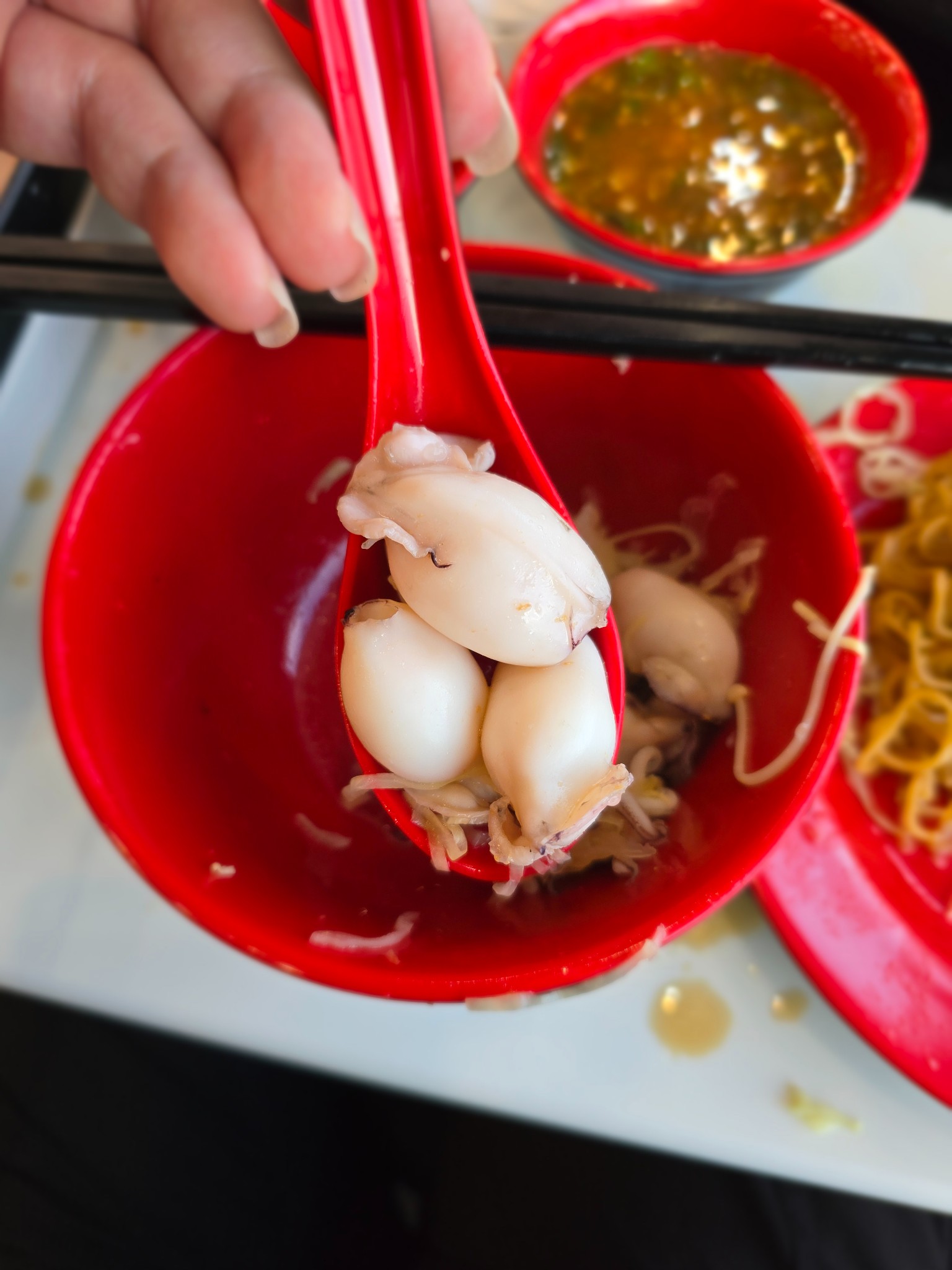 นอกจากกุ้งแก้วแล้ว หมึกสด วันนี้ก็ตัวใหญ่มากครับ ลวกแล้วขนาดกำลังดี ไม่ได้เล็กจิ๋วแบบรอบก่อนๆ ที่เคยเจอ ทำให้เคี้ยวหนึบหนับเต็มคำ สดใช้ได้เลยครับ