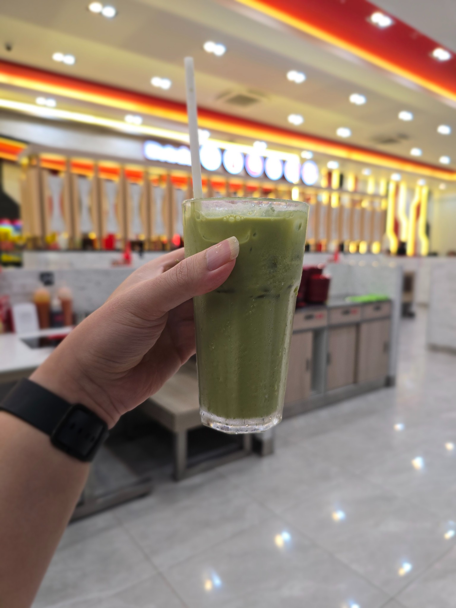 จบมื้อด้วยเครื่องดื่มใหม่ที่ลองสั่งมาคือ มัตฉะน้ำมะพร้าว ครับ รสชาติชาเขียวเข้มข้นดีมาก แต่ตัวน้ำมะพร้าวอาจจะจางไปหน่อยครับ ถ้าเข้มข้นกว่านี้จะลงตัวเลย