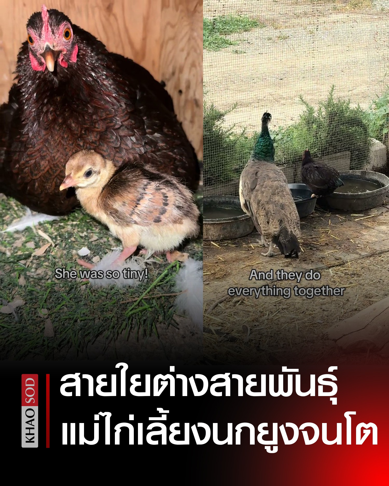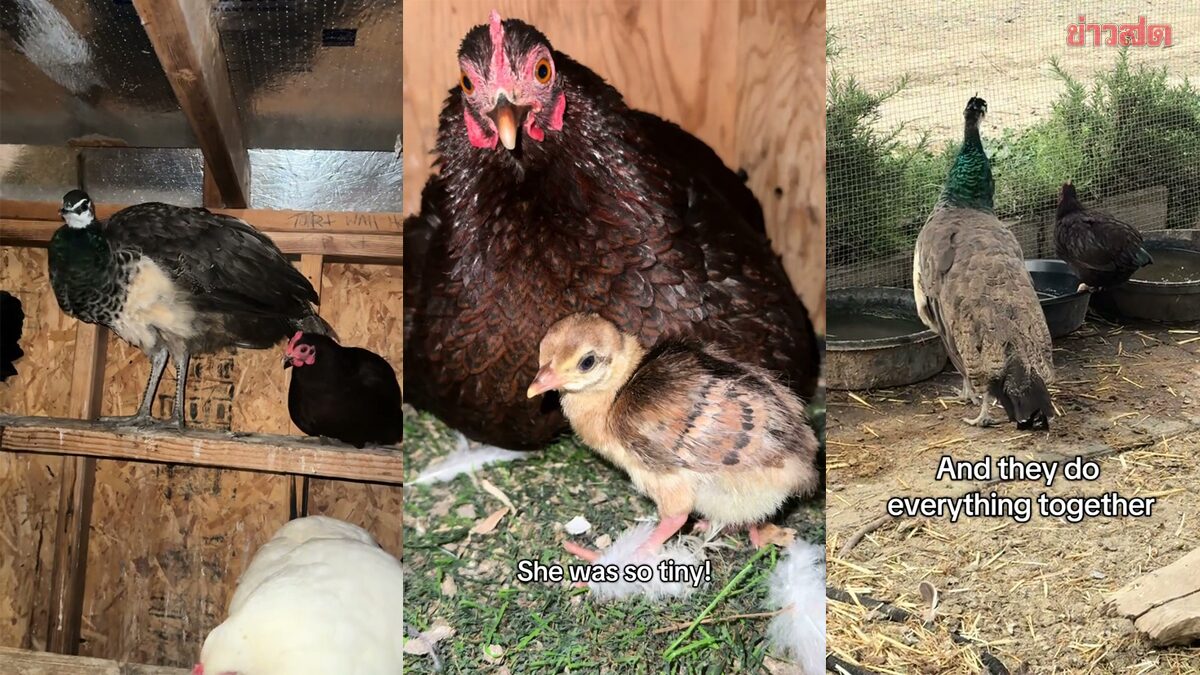 ไวรัลสุดอบอุ่นใจ “แม่ไก่” รับบทแม่บุญธรรม “เลี้ยงดู” ลูกนกยูง จนโต แม้ยิ่งโต ยิ่งสูงใหญ่