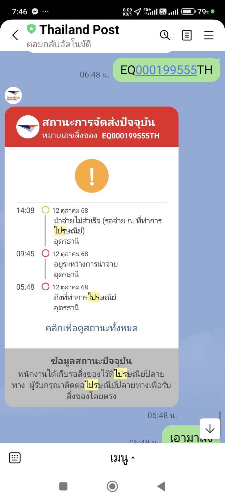 ไปรษณีย์ EMS อุดร ไม่ยอมใส่ให้