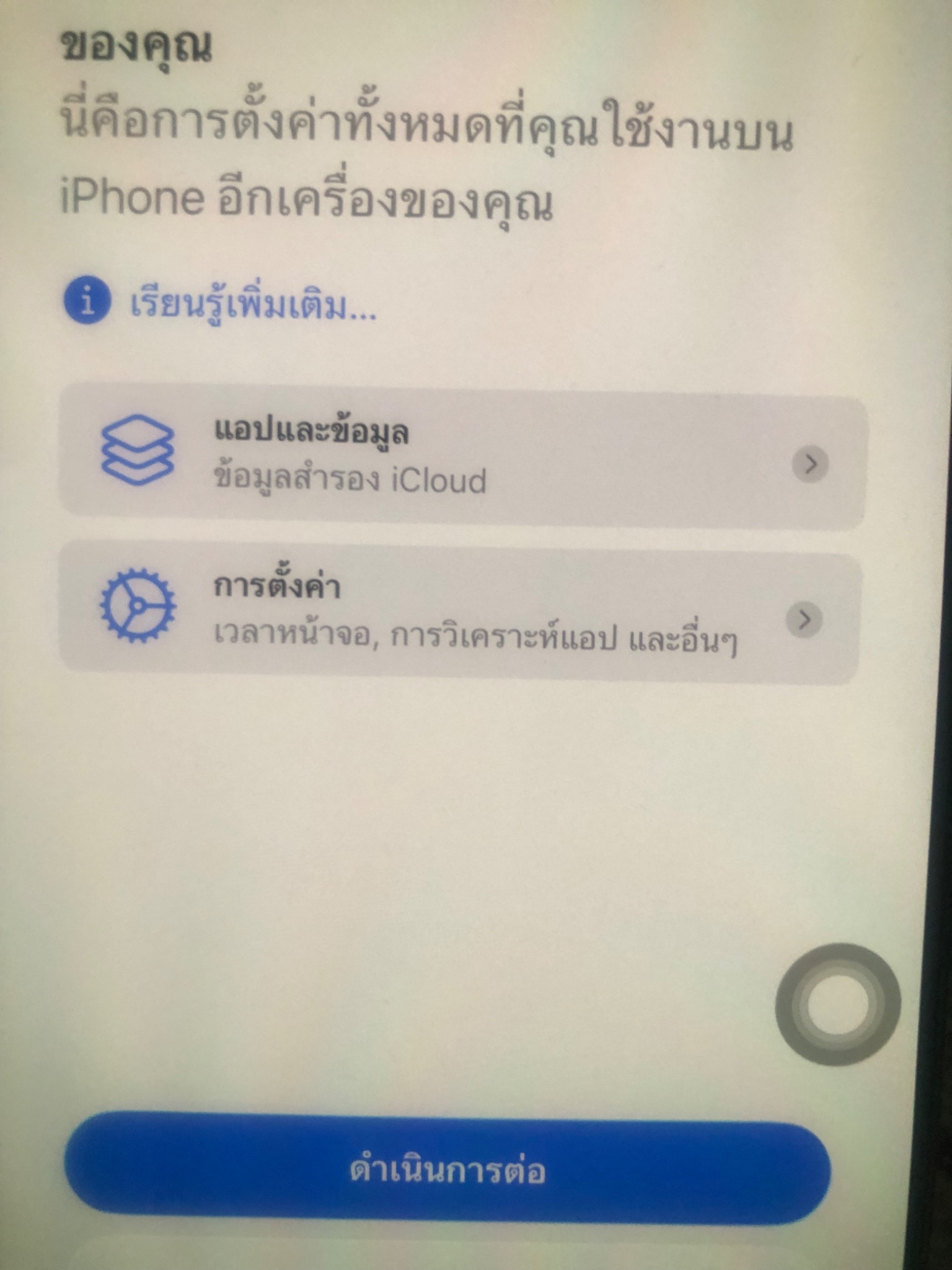 ย้ายข้อมูล iphone แบบเครื่องเก่ามาเครื่องใหม่ไม่มีคำสั่ง “ย้ายจากiphoneอีกเครื่องให้เลือก” ต้องทำยังไง