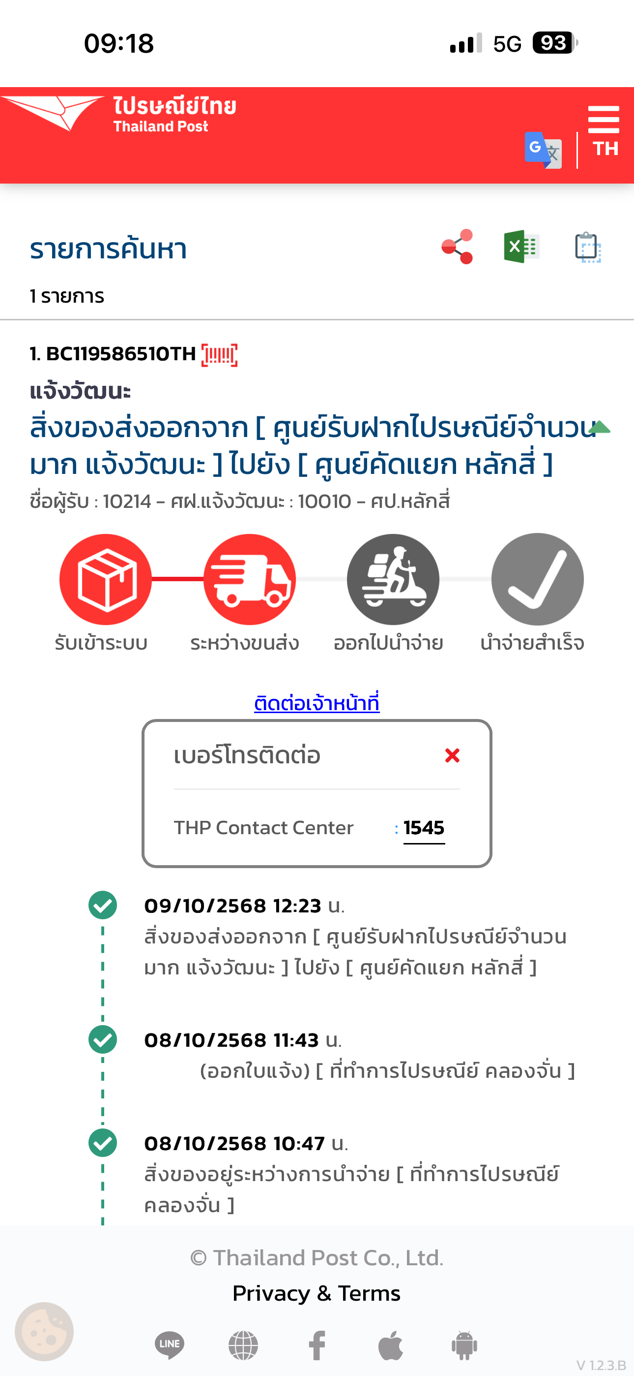 ส่งไปรษณีย์ สถานะยังค้างว่า "อยู่ระหว่างการนำจ่าย ไปรษณีย์อนุญาตเอกชน" ตั้งแต่วันที่ 1