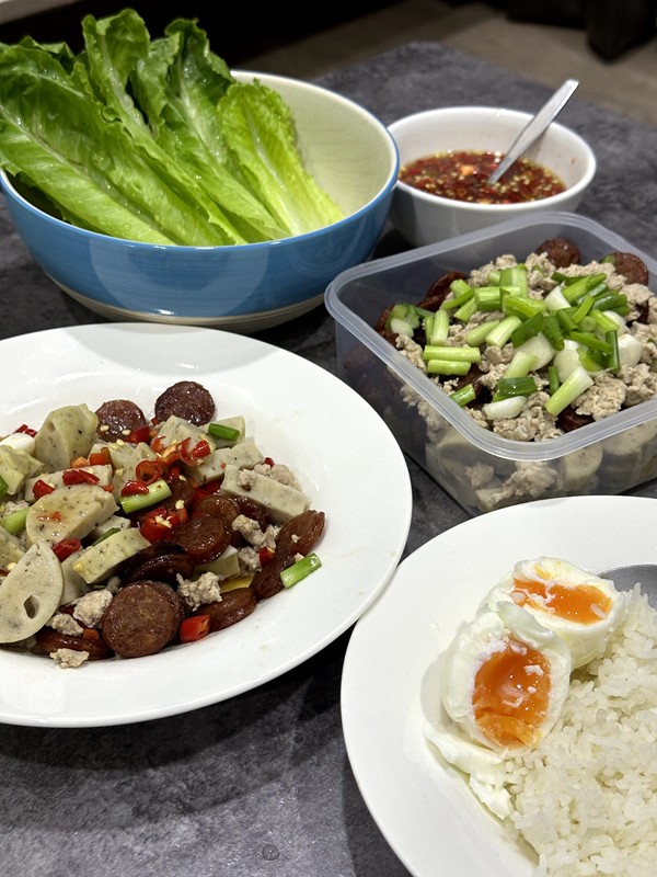 ยำกุนเชียงหมูยอ + ผักคอส + ไข่ต้ม