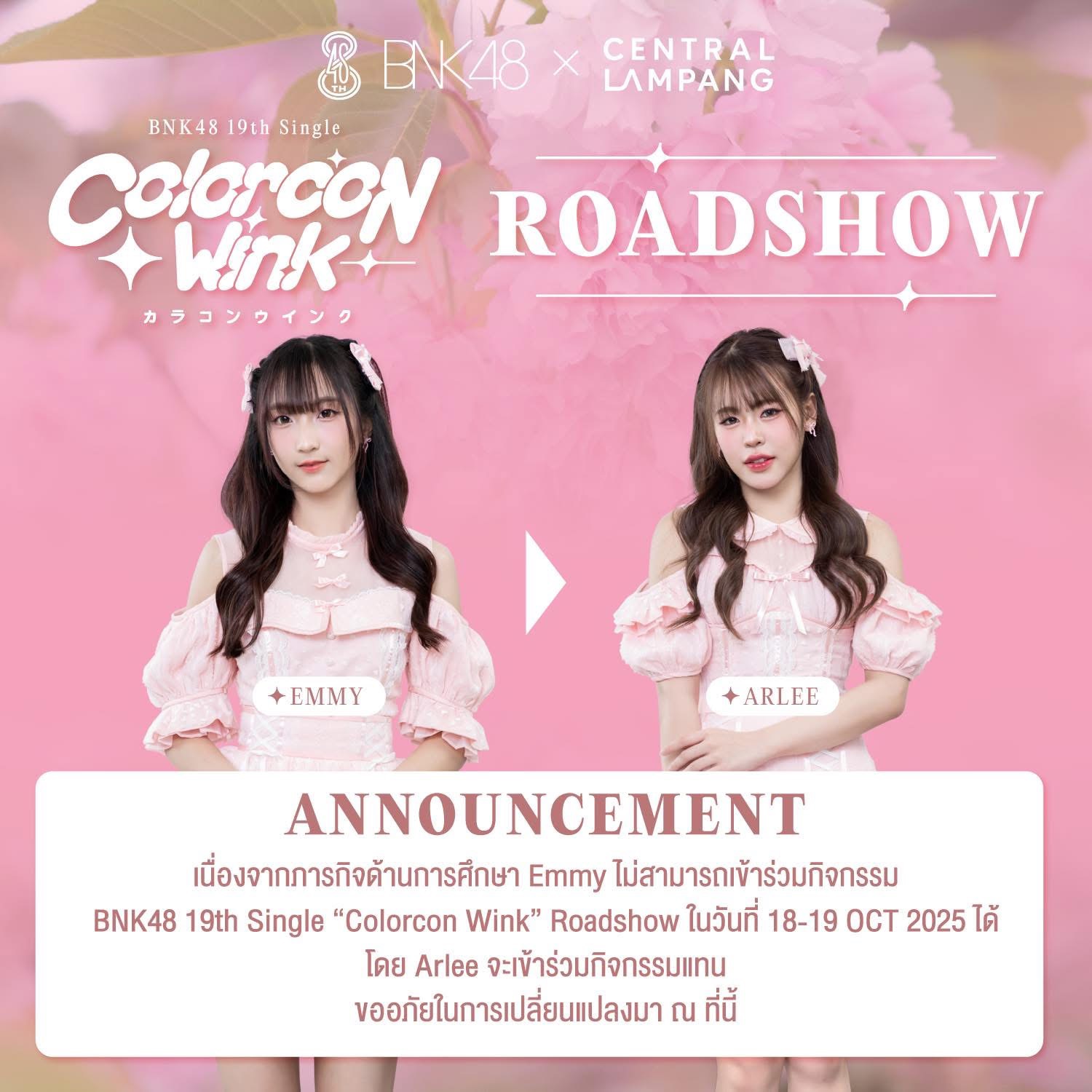 #ColorconWinkTH_Roadshow BNK48 19th Single “Colorcon Wink” Roadshow 🗓️ 18-19 OCT 2025 📍 Central Lampang L / Janry / Emmy / Patt / Proud / Earth 12:00-13:00 Mini Concert 14:00-