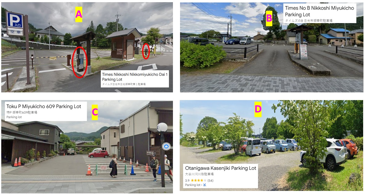 ตย.ข้างล่างนี้ ผมหาโดยใช้คำว่า parking near Tobu Nikko sta.