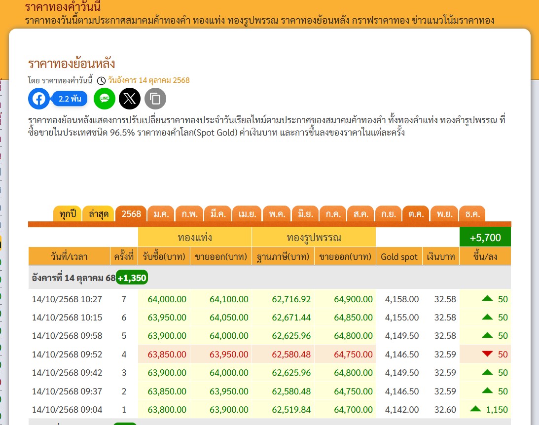 ราคาทองแท่ง (ขายออก) วันนี้ 64,000 บาทแล้วจ้า ตามการคาดการณ์