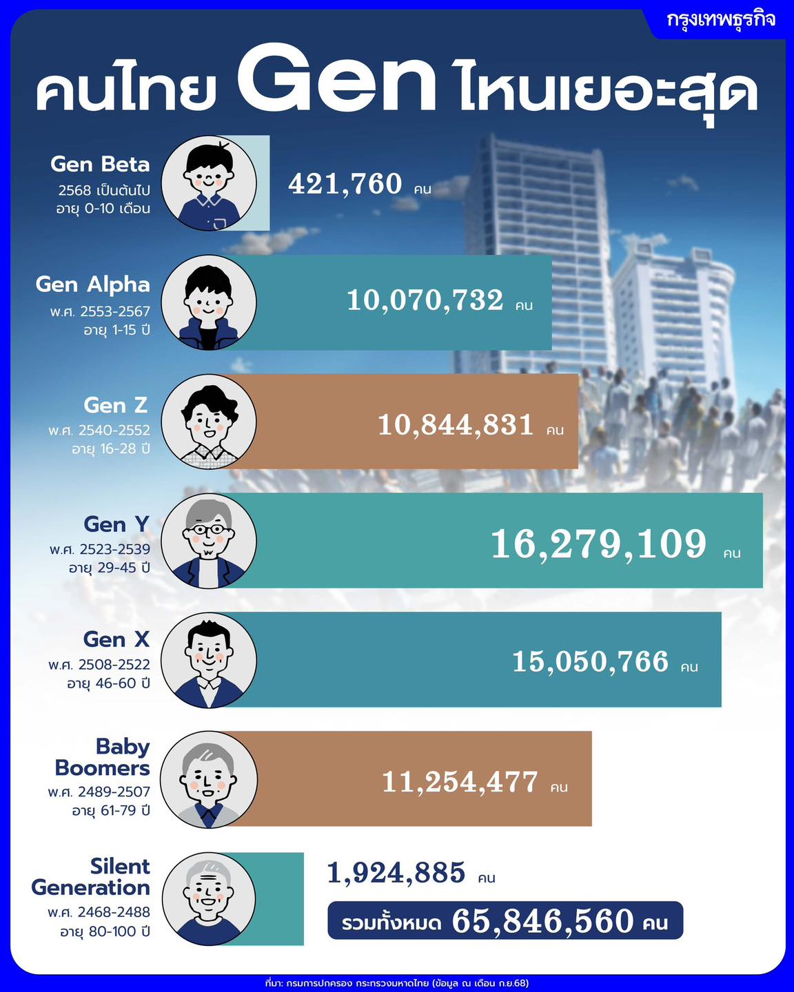 GEN-Y เยอะสุด 16 ล้านคน ( เกิดช่วง 2523-2539 )