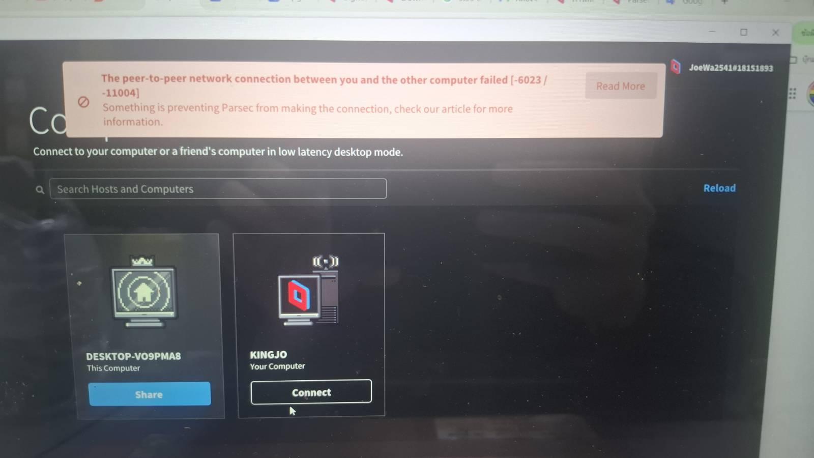ผมเปิดโปรแกรม Parsec แล้วเชื่อมกับคอมพิวเตอร์อีกเครื่องไม่ได้