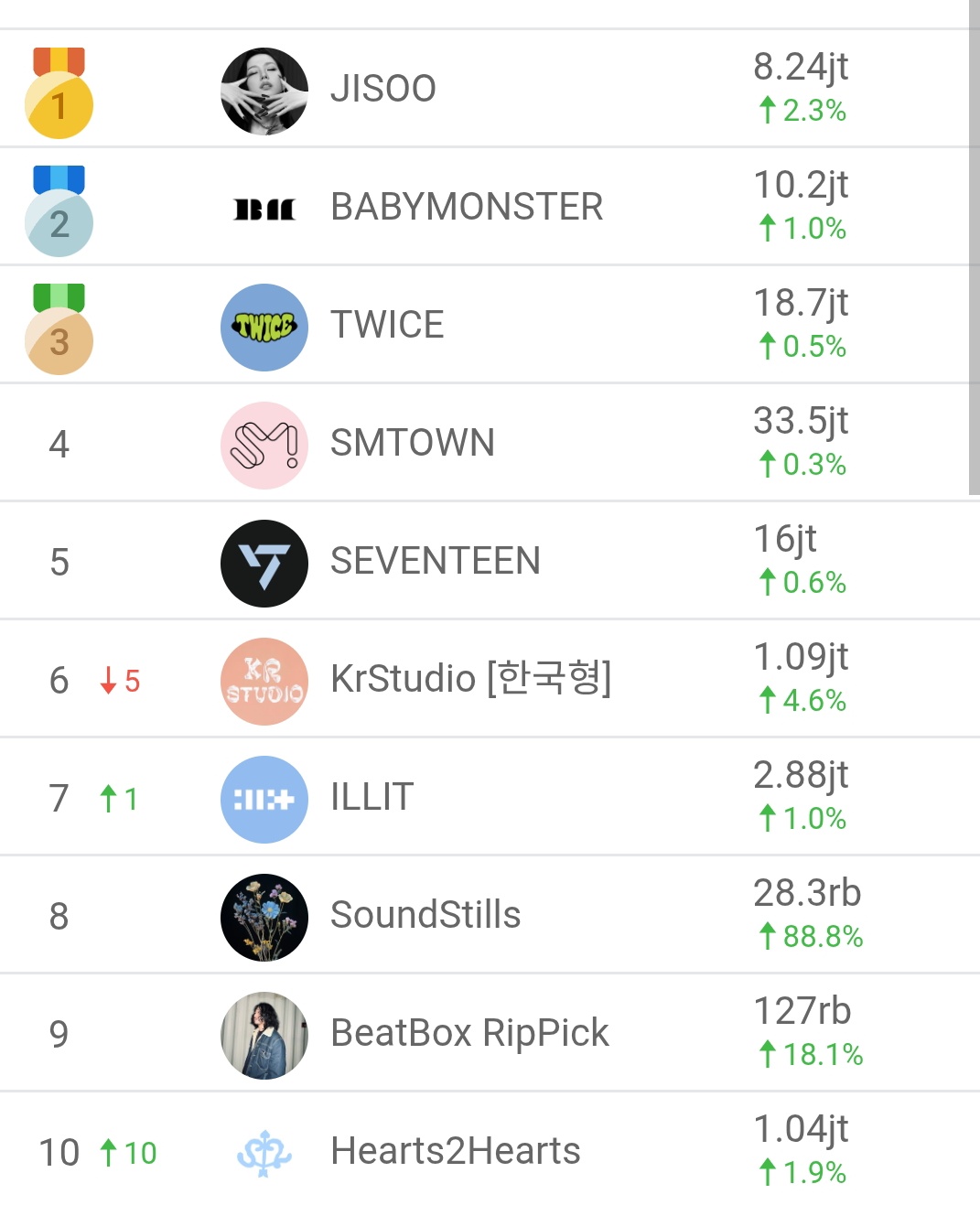 BABYMONSTER Official YouTube Channel เป็นช่องยูทูปที่ได้รับความนิยมสูงสุดเป็นอันดับ 2 ในเกาหลีในรอบสัปดาห์นี้