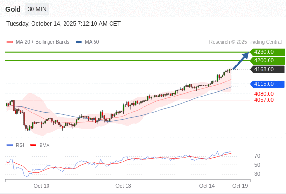 แนวทางการเทรด: หากราคาสูงกว่า 4115 มีโอกาสที่ราคาจะขึ้นไปที่ 4200 และ 4230