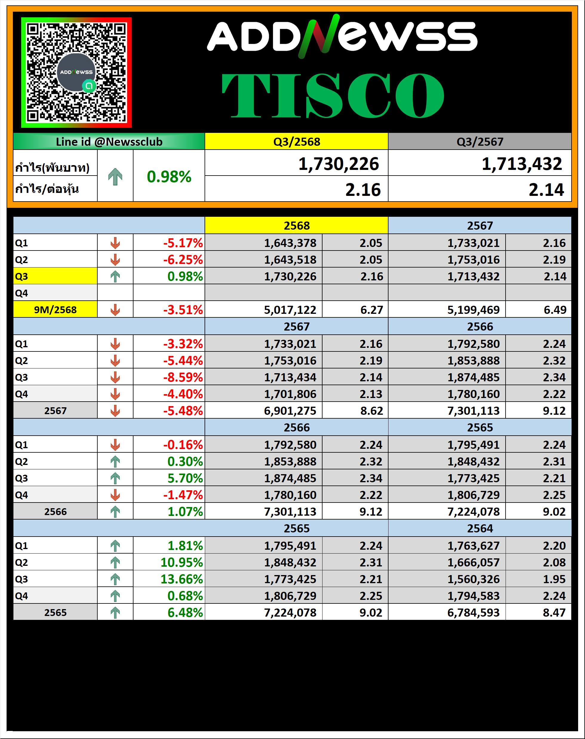 มาแล้วตัวแรก งบ TISCO Q3/2025 ออกแล้วจ้า