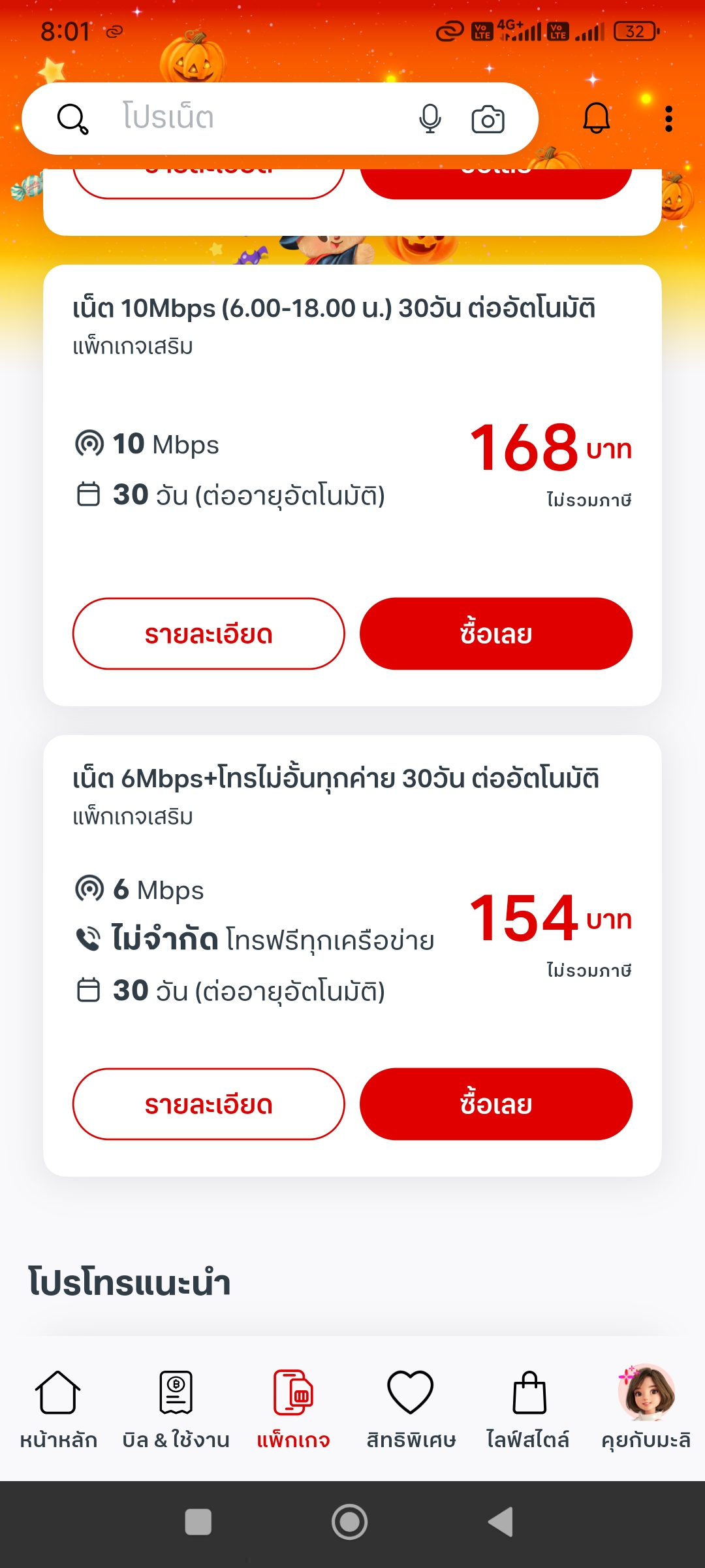 จะติดต่อเจ้าหน้าที่สอบถามโปร และ แพ็คเก็จ