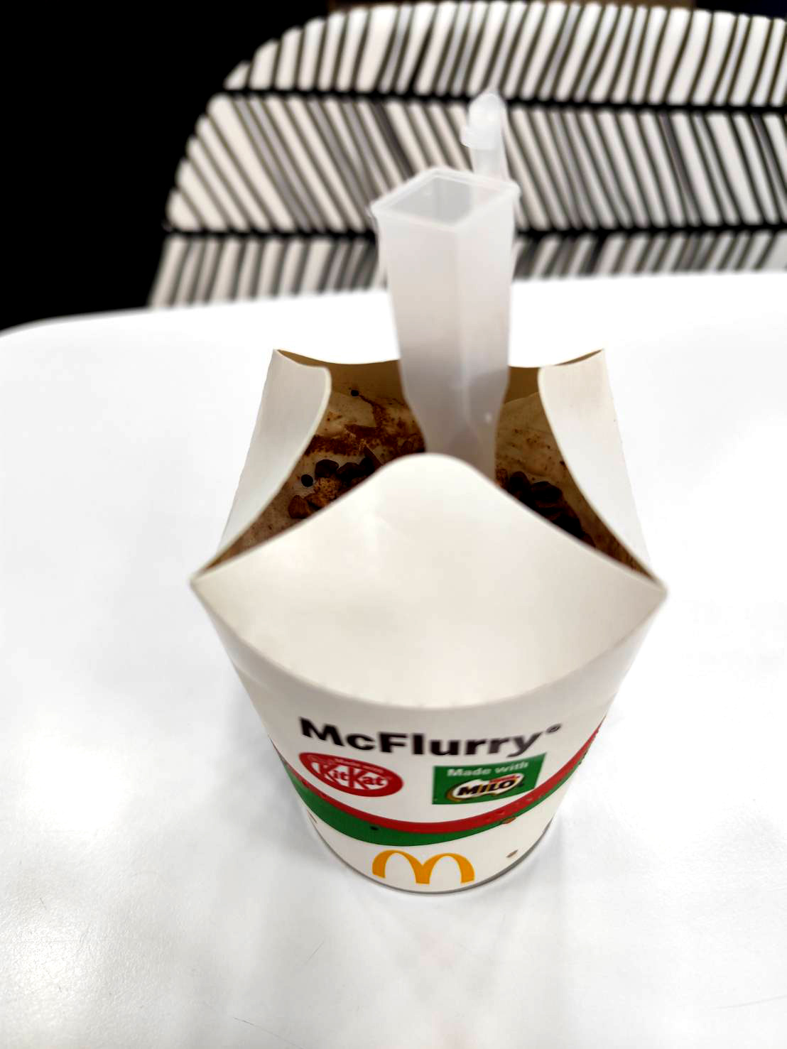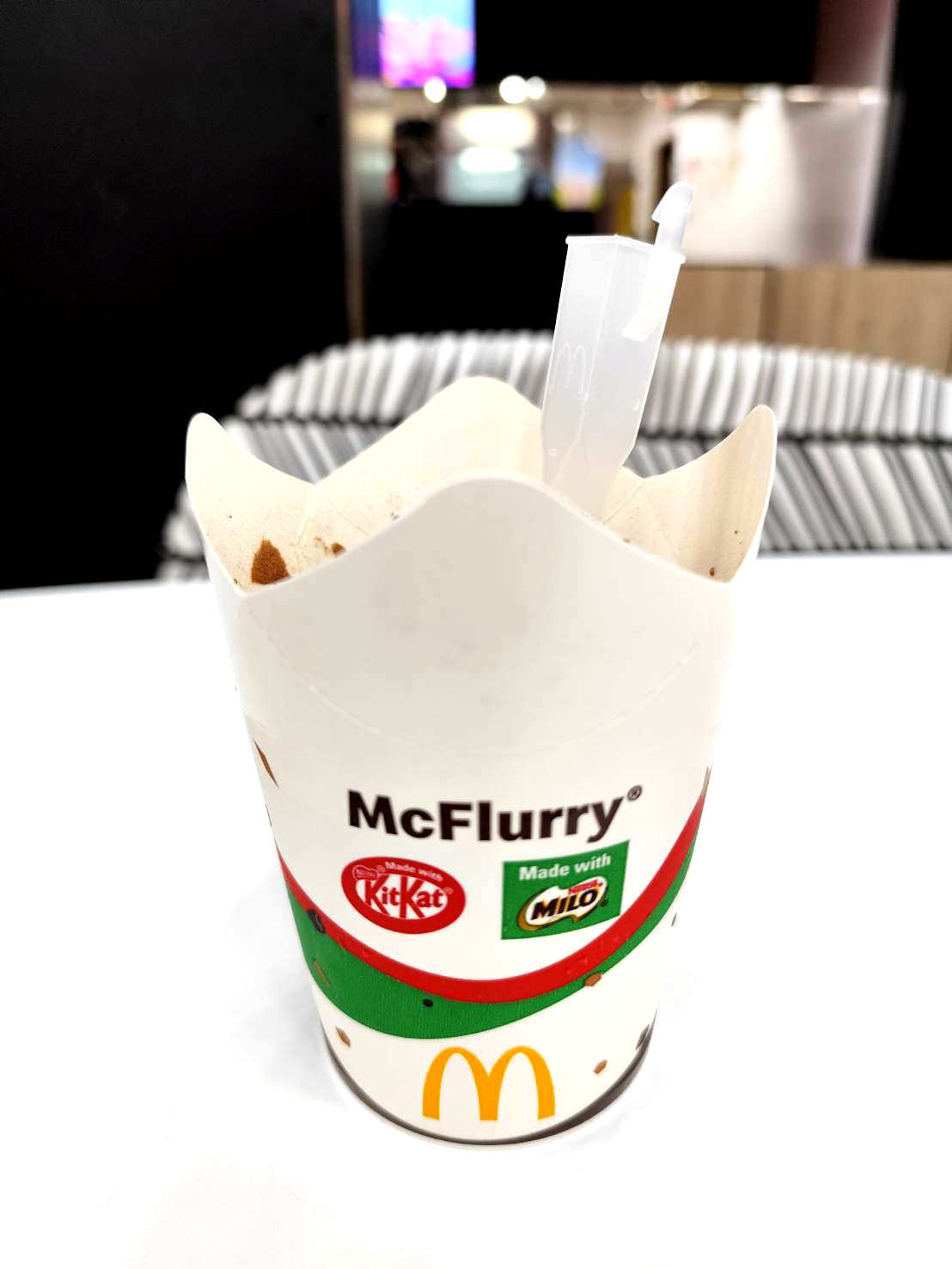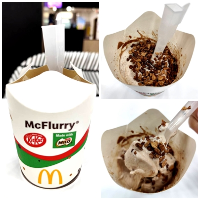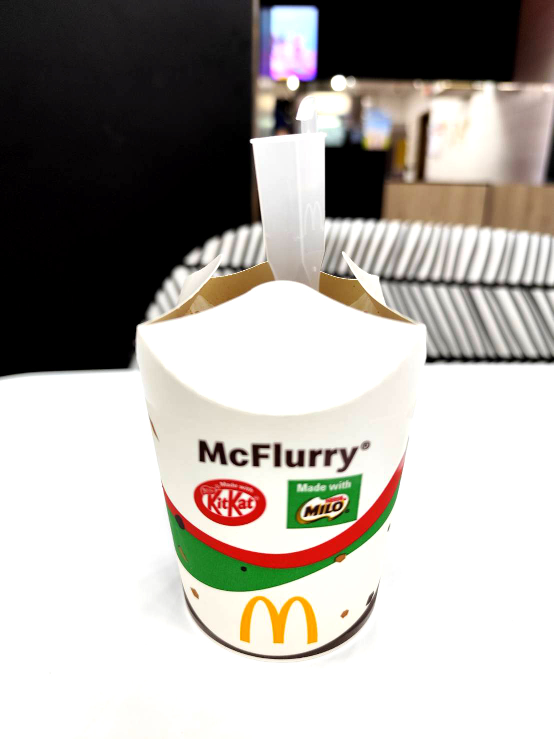 วันศุกร์ที่แล้วเดินผ่าน McDonald's แล้วเห็นป้าย McFlurry แมคเฟลอร์รี made with คิทแคท&ไมโล