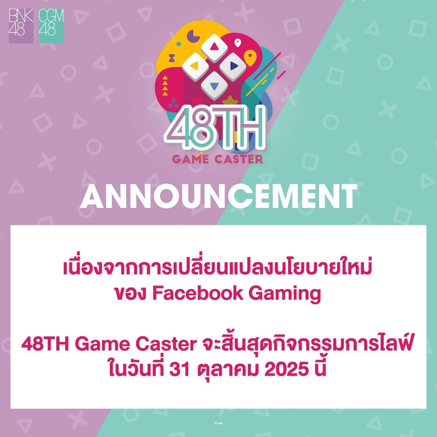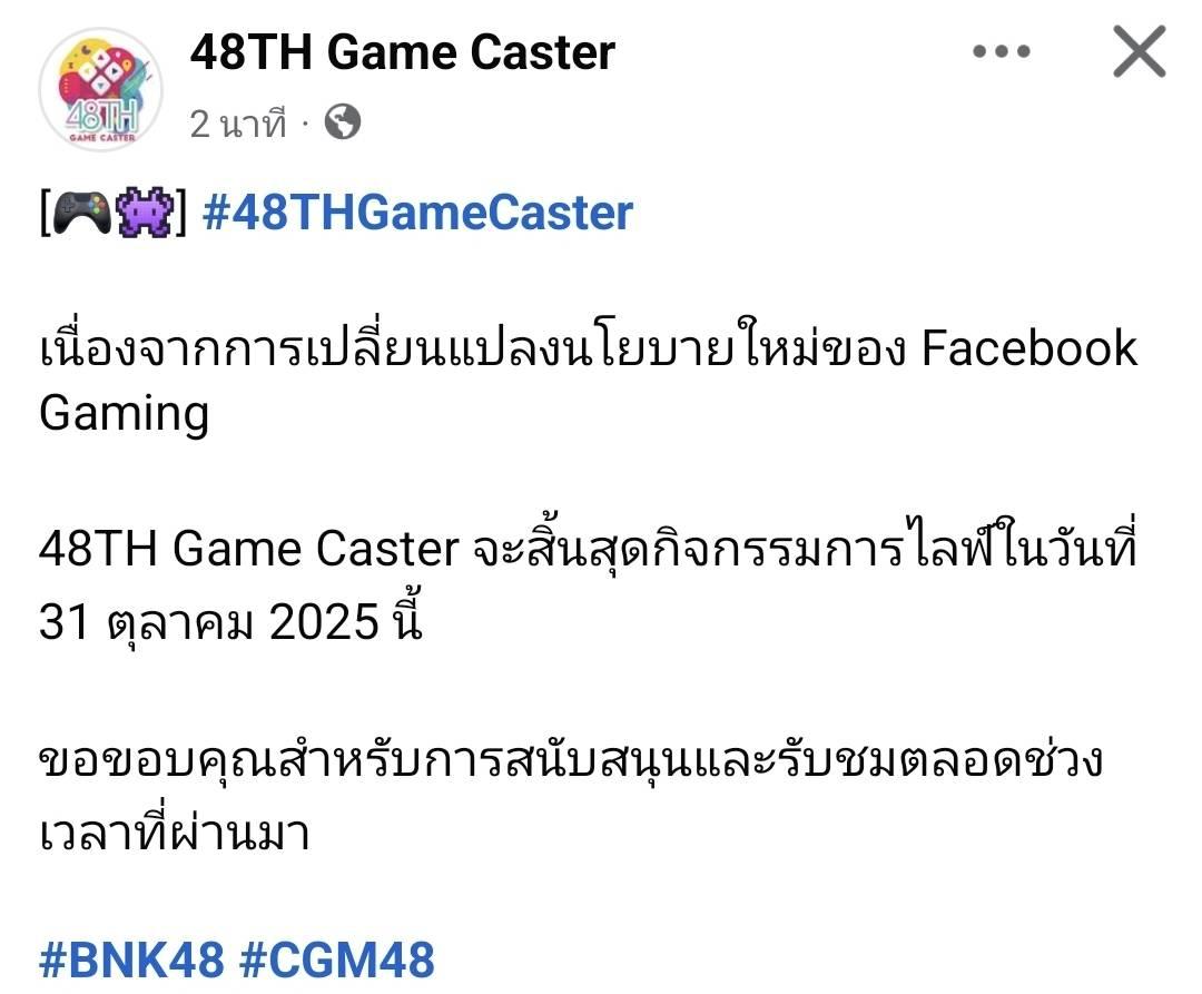 เพจ 48TH Game Caster จะสิ้นสุดไลฟ์แคสต์เกมในวันที่ 31 ตุลาคม 2568
