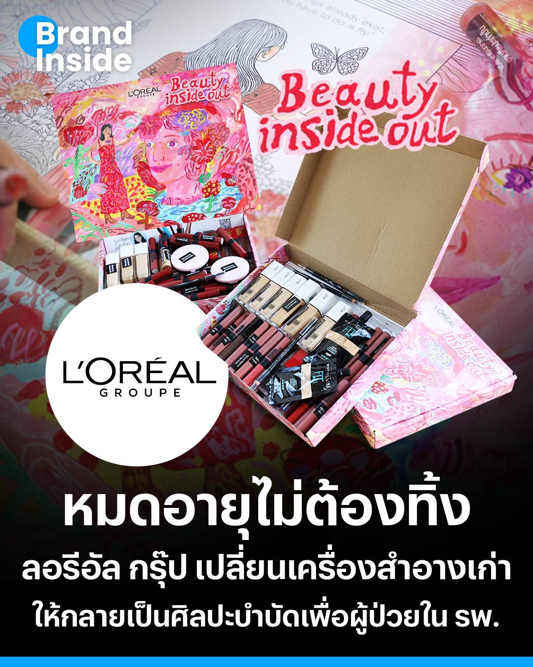 ลอรีอัล กรุ๊ป ประเทศไทย เปิดโครงการใหม่ กล่องศิลปะบำบัดใจ “Beauty Inside Out” ที่จะมาฟื้นชีวิตเครื่องสำอางหมดอายุเหล่านี้ ให้กลายเป็นเครื่องมือศิลปะบำบัด ที่มาช่วยเยียวยาจิตใจอย่างสร้างสรรค์
