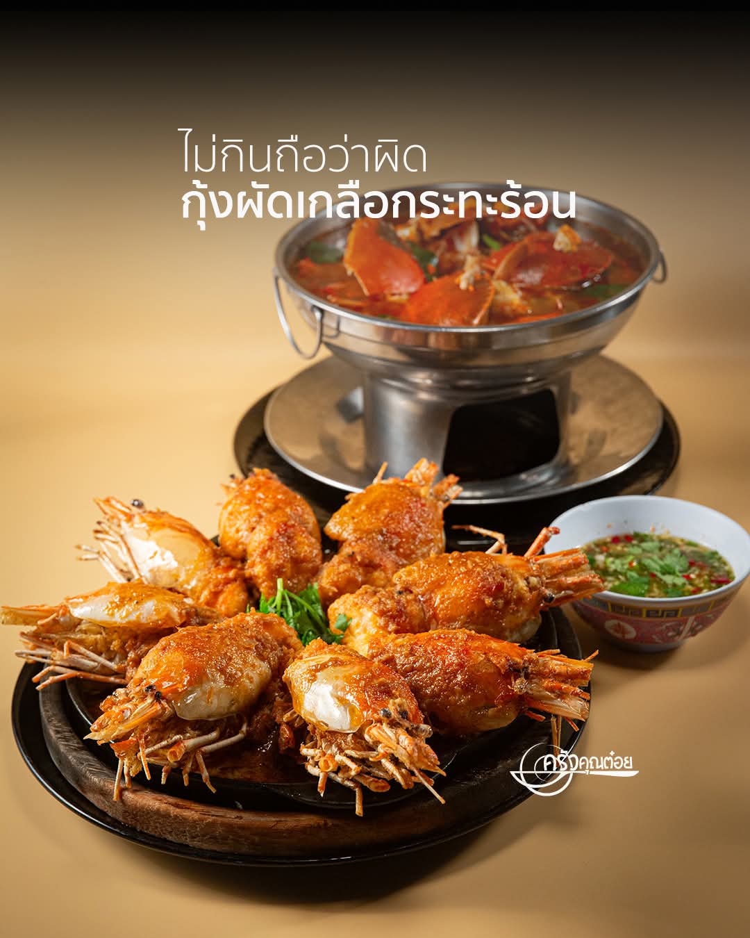 ไม่กินถือว่าผิด-กุ้งผัดเกลือกระทะร้อน ร้านบ้านอาหารศรีสุวรรณ จ. นครปฐม