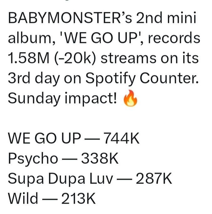 อัลบั๊ม “We Go Up” โดย BABYMONSTER มียอดสตรีม 1.58 ล้านครั้งบน Spotify Global